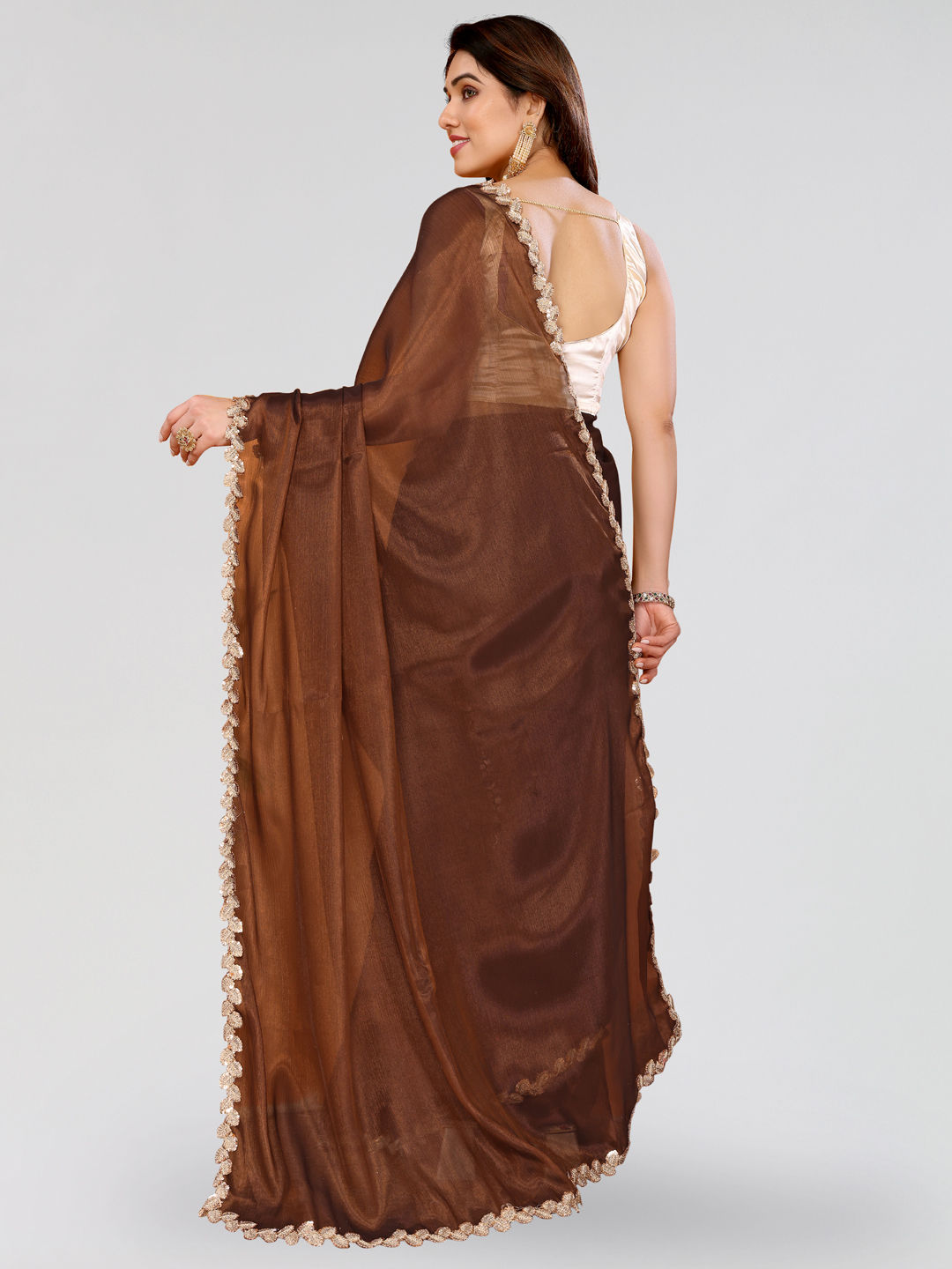 Art Silk Party Wear Saree in Beige and Brown with Embroidered work