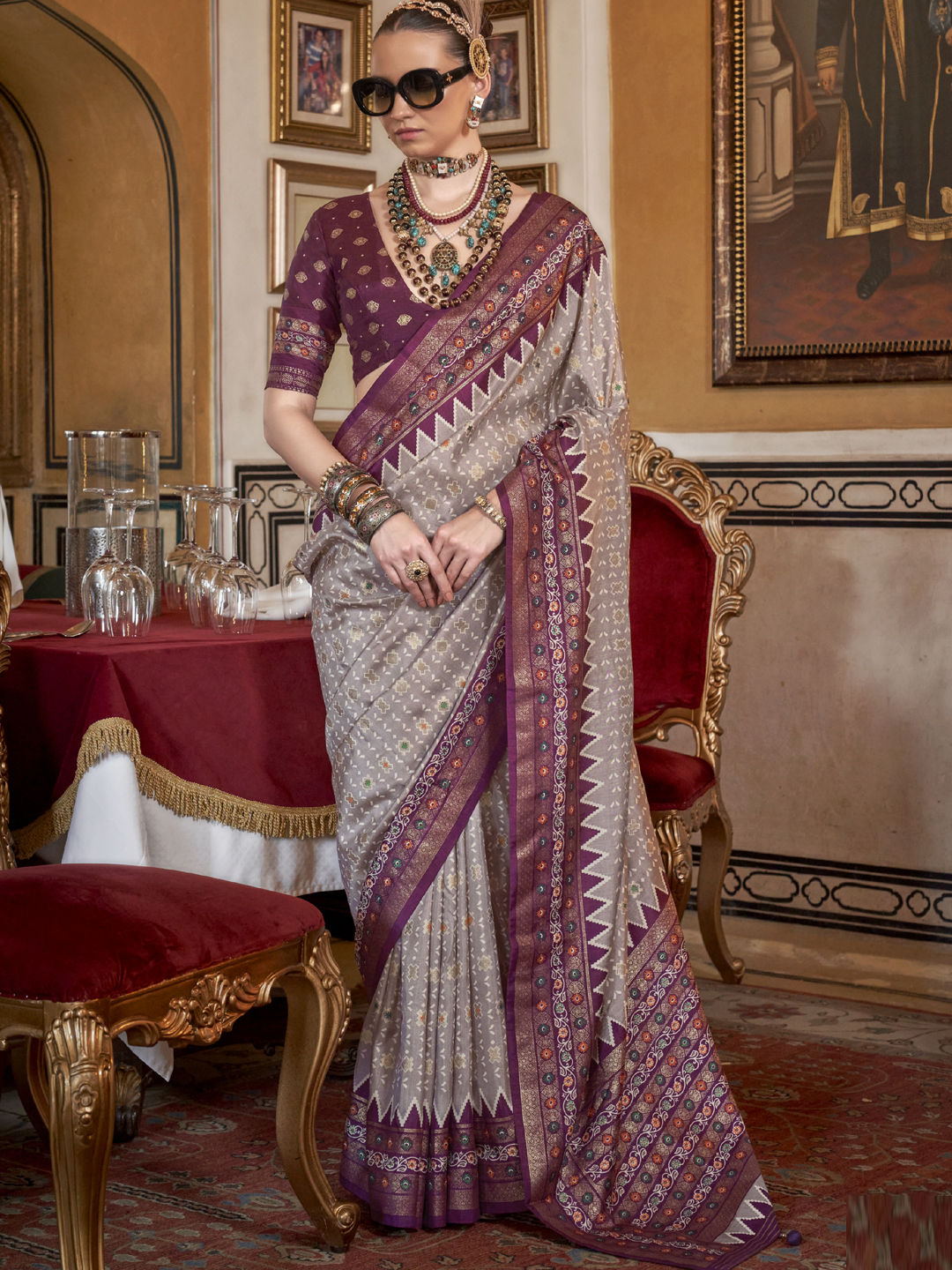 Art Silk Festive Saree in Purple and Violet with Printed work