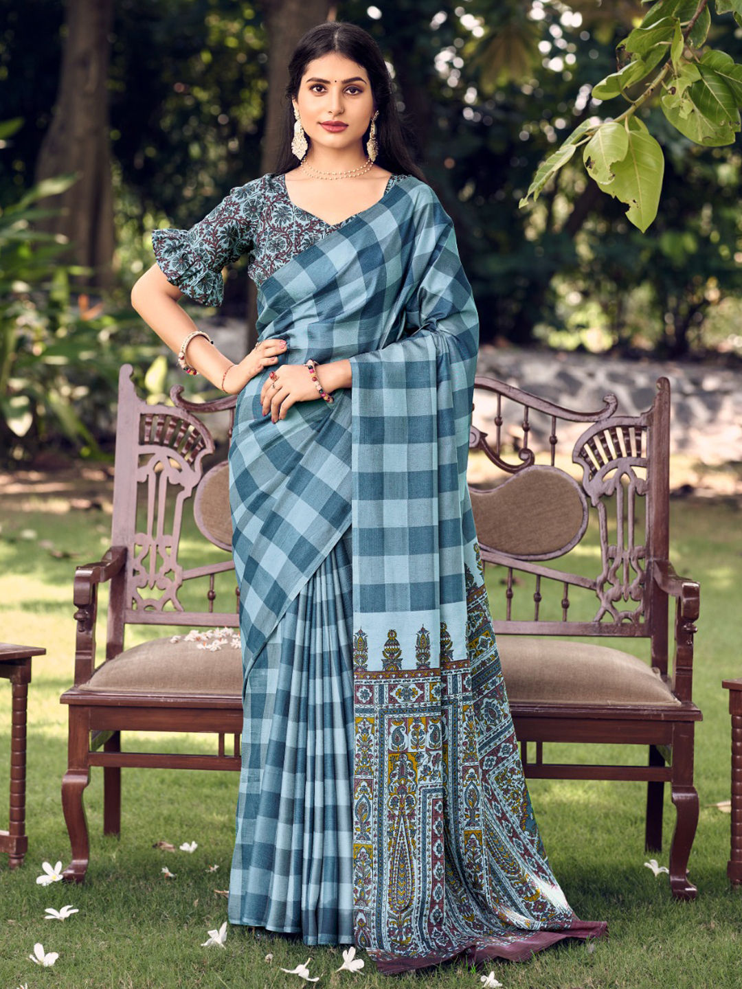 Black and Grey color Saree in Art Silk fabric with Printed work