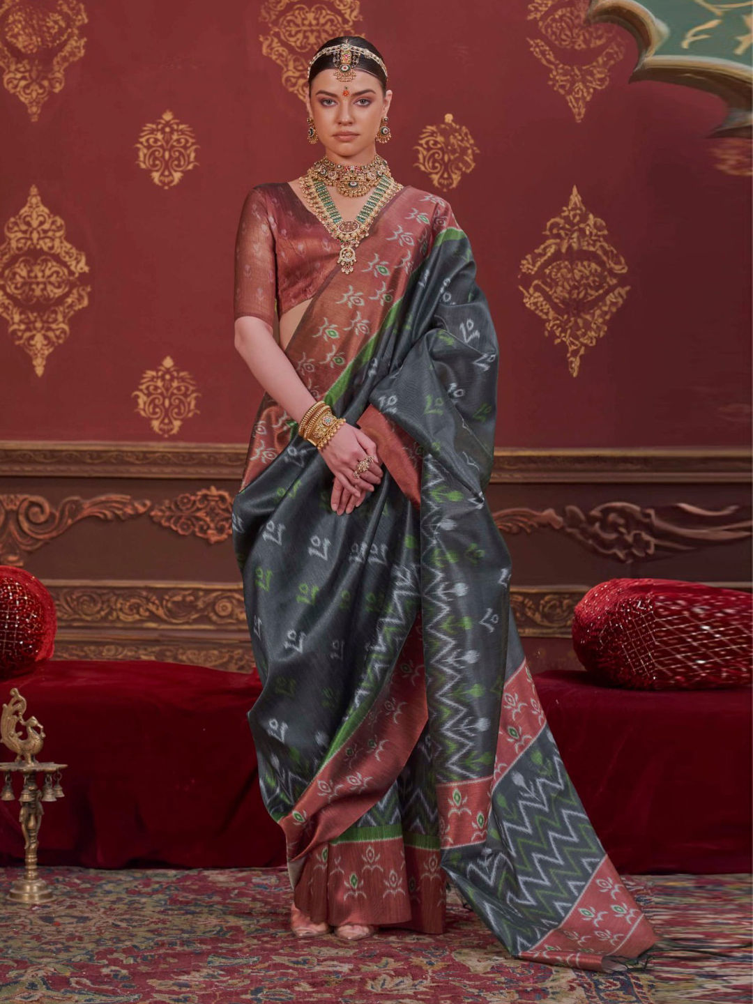 Black and Grey color Saree in Art Silk fabric with Printed work