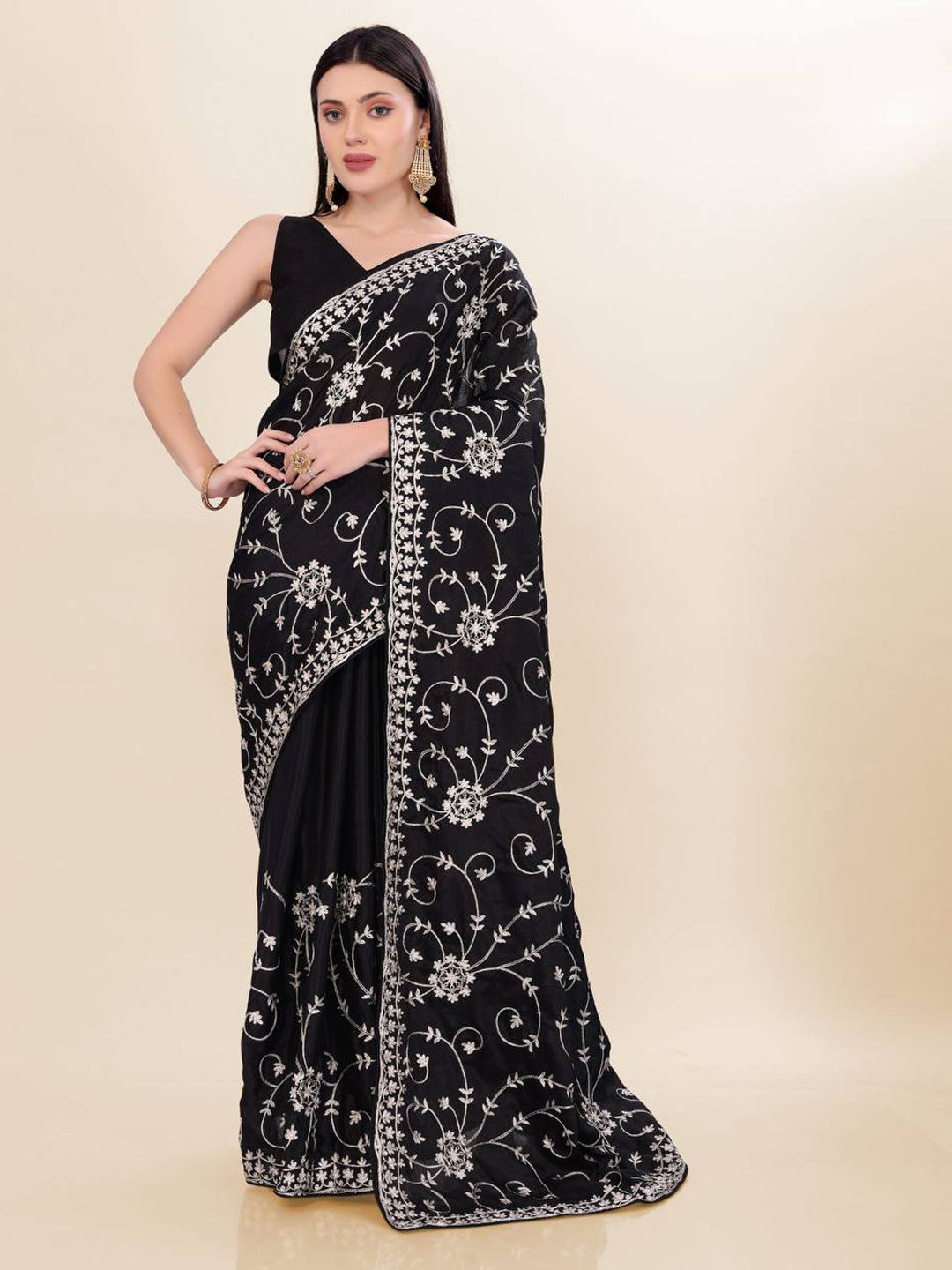 in Black and Grey with Zari work