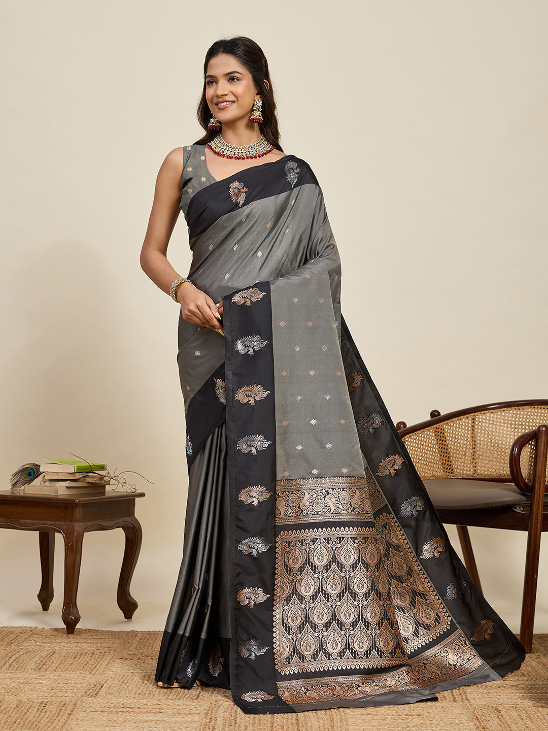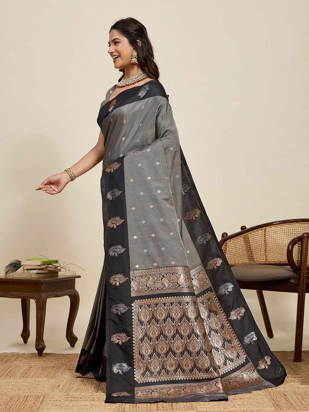 Black and Grey color Saree in Art Silk fabric with Weaving, Zari work