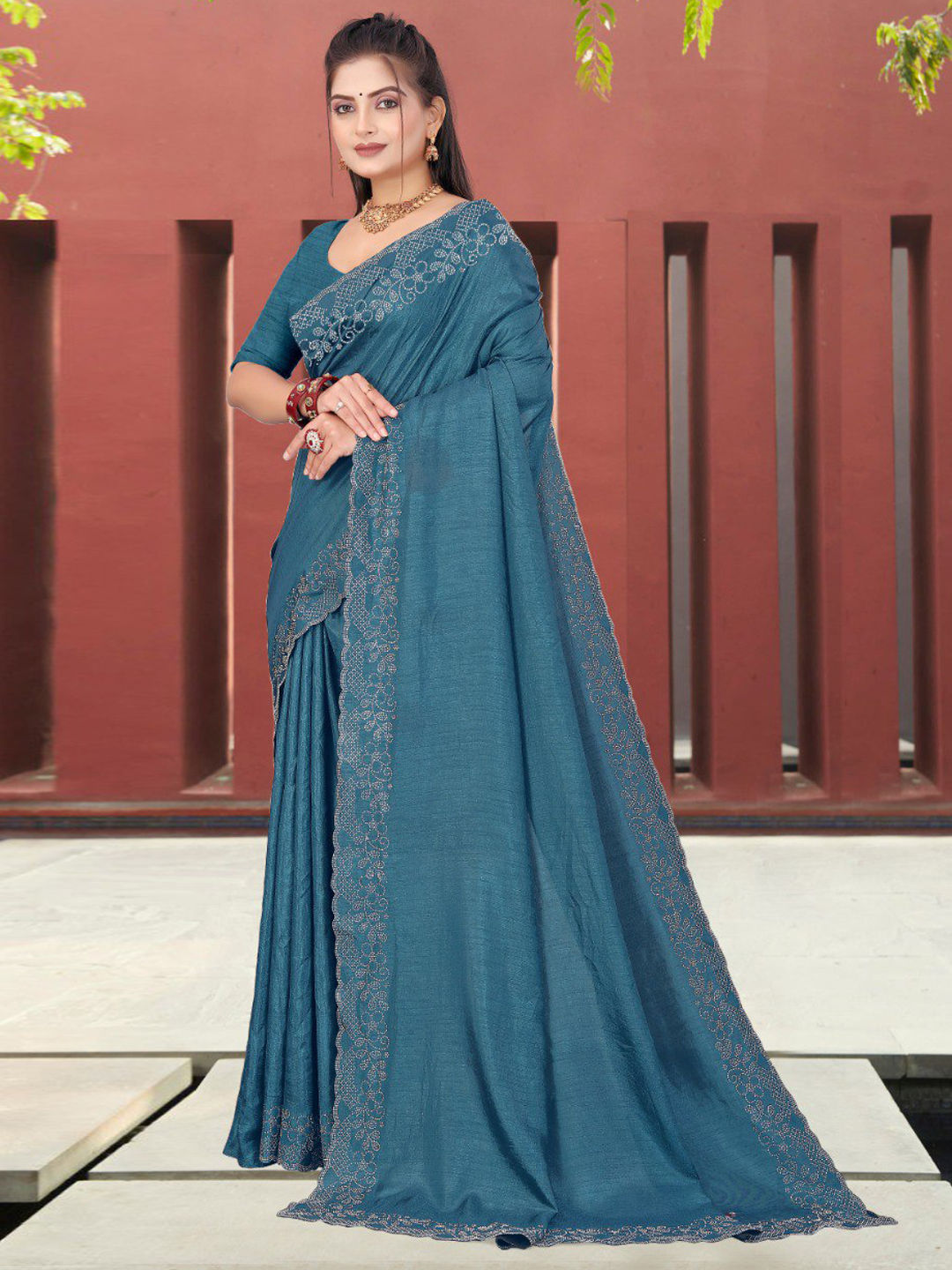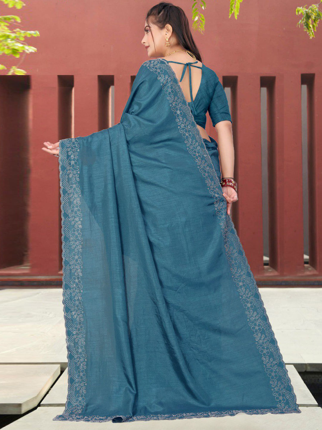 Blue color Saree in Art Silk fabric with Fancy Work work