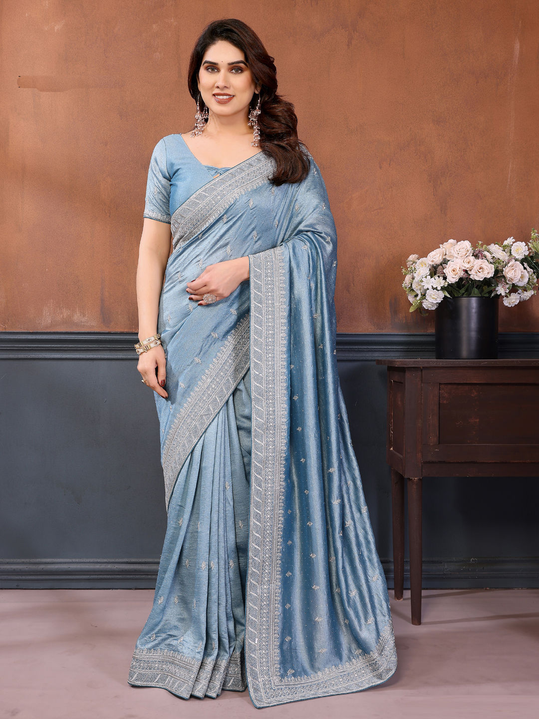 Blue color Saree in Art Silk fabric with Embroidered, Stone work