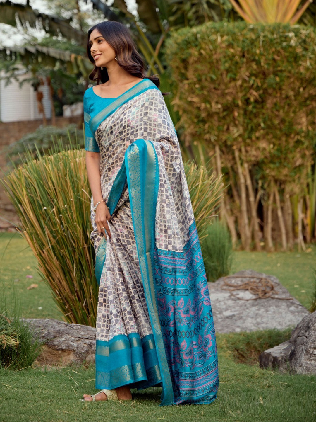 Black and Grey, Blue color Saree in Art Silk fabric with Printed, Weaving work