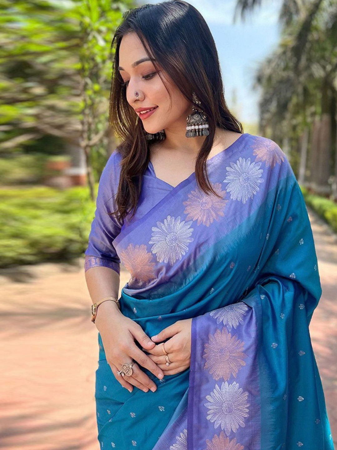Art Silk Traditional Saree in Purple and Violet with Weaving work
