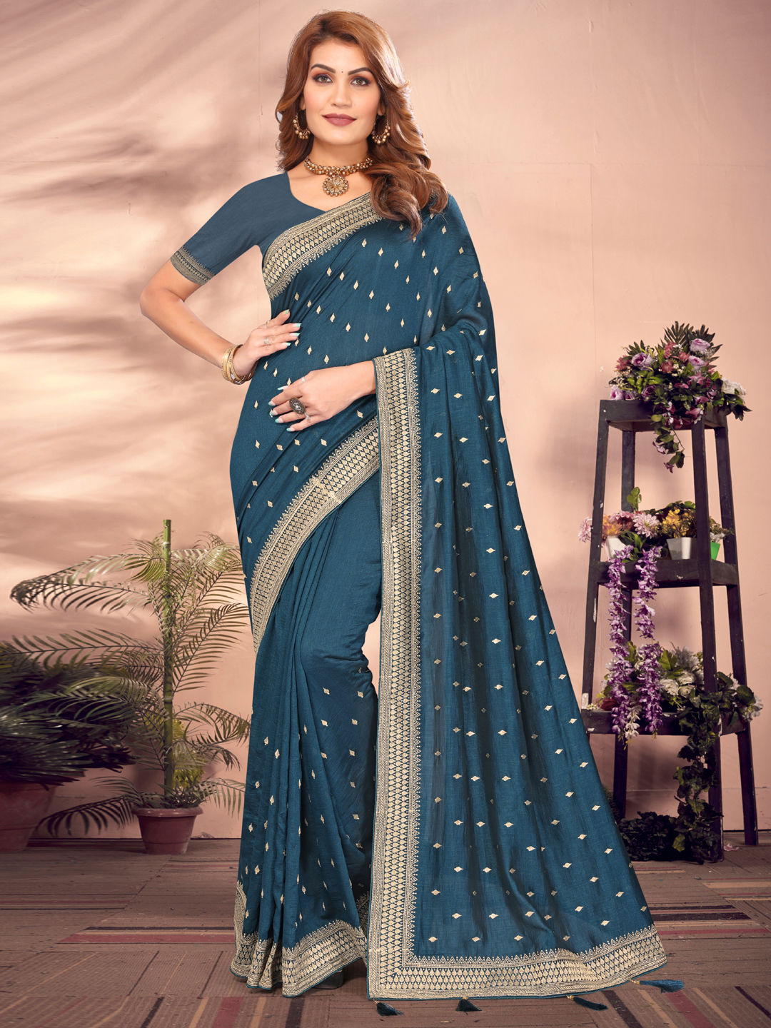 in Blue with Zari work
