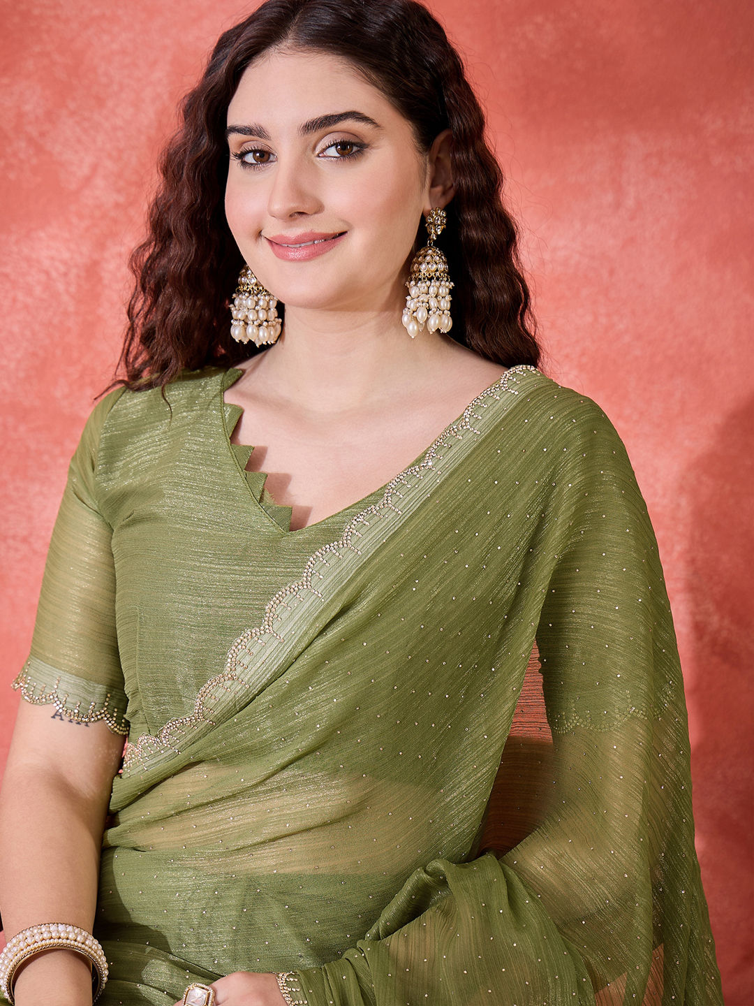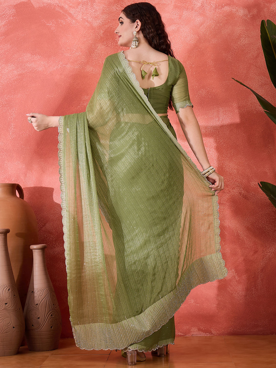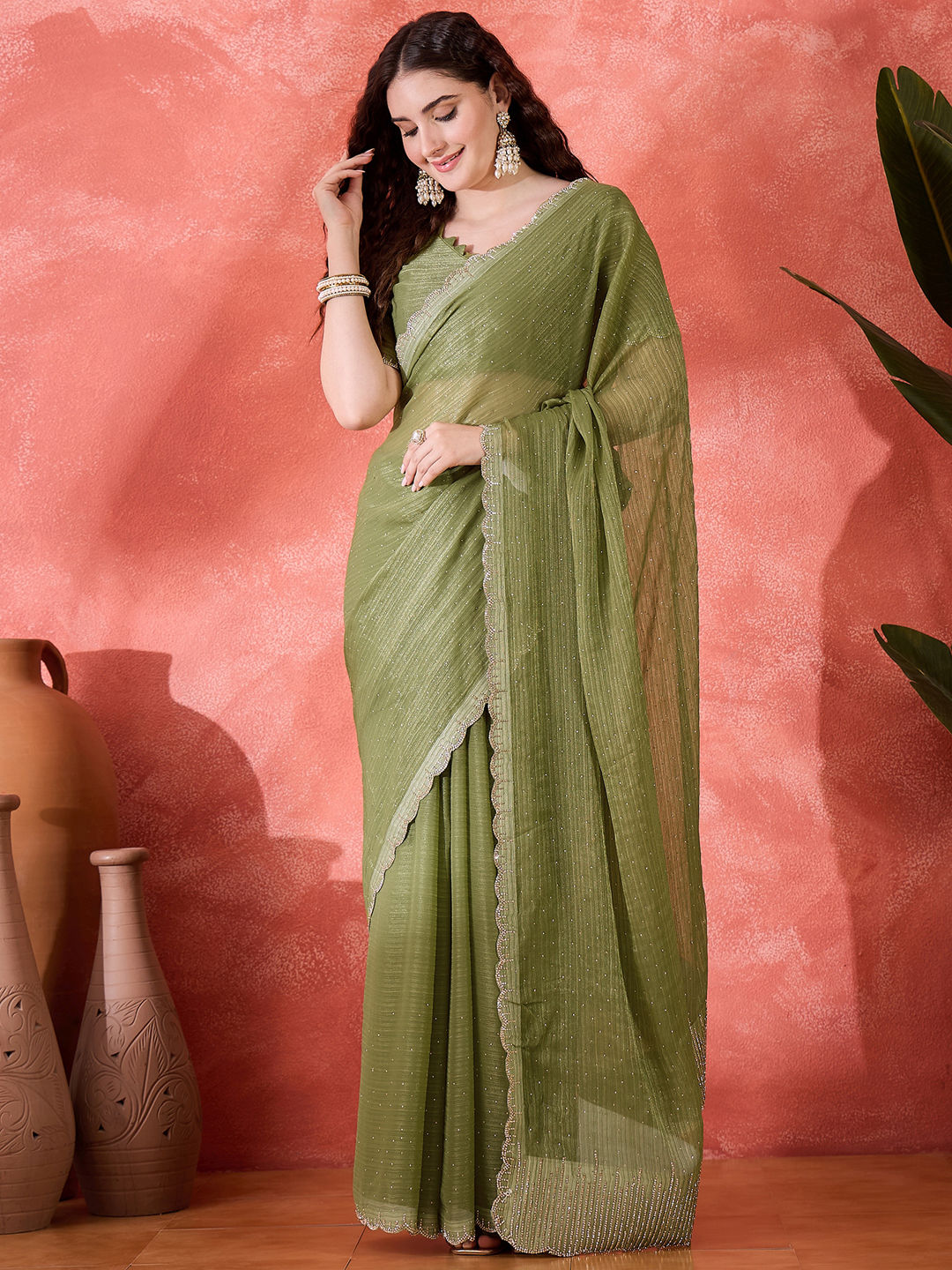 Art Silk Festive Saree in Pink and Majenta with Zircon work