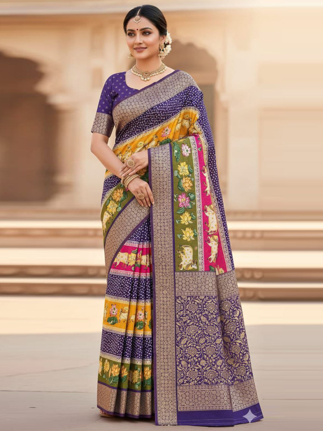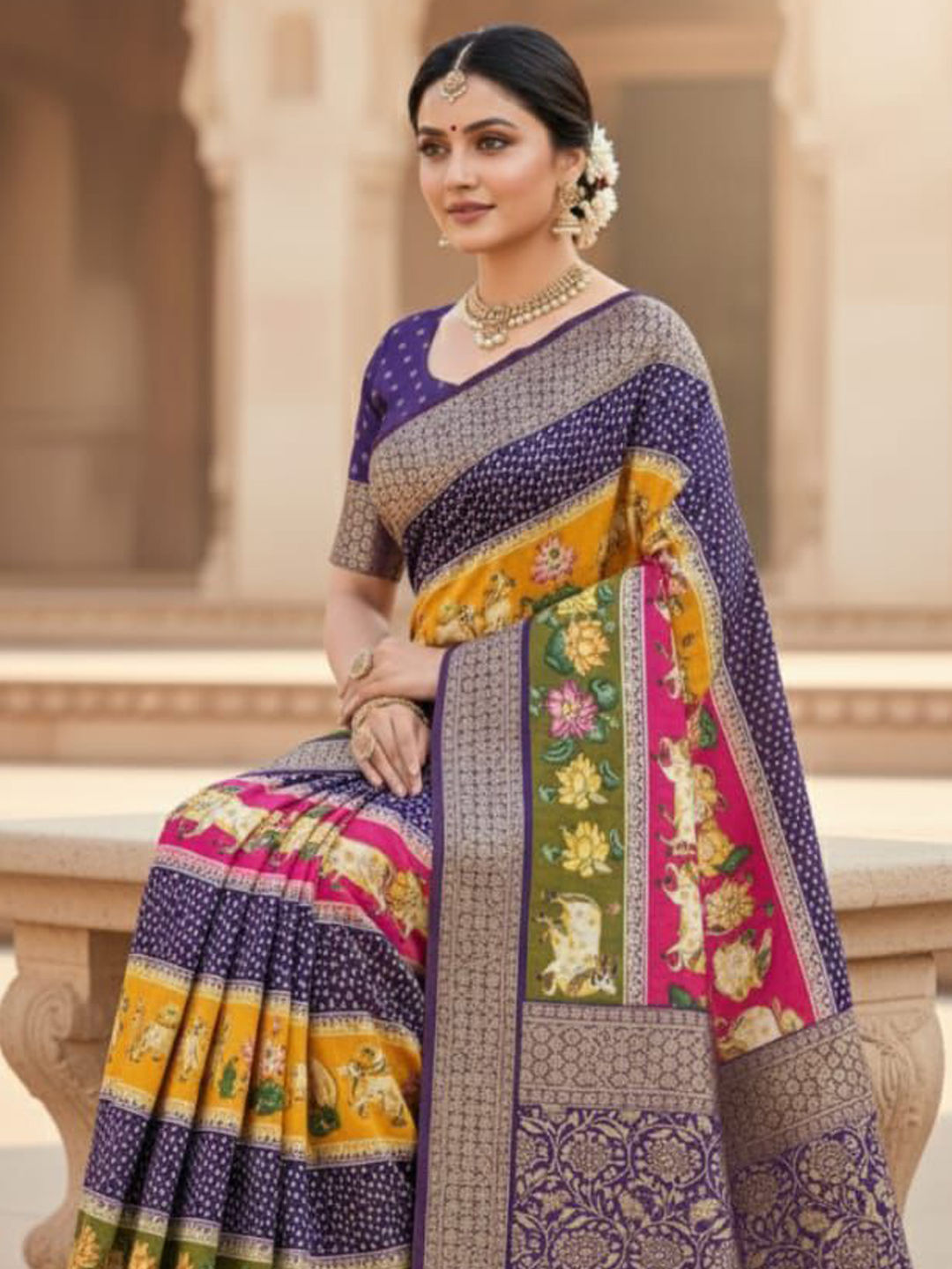 Multicolor color Saree in Art Silk fabric with Bandhej, Printed, Weaving work