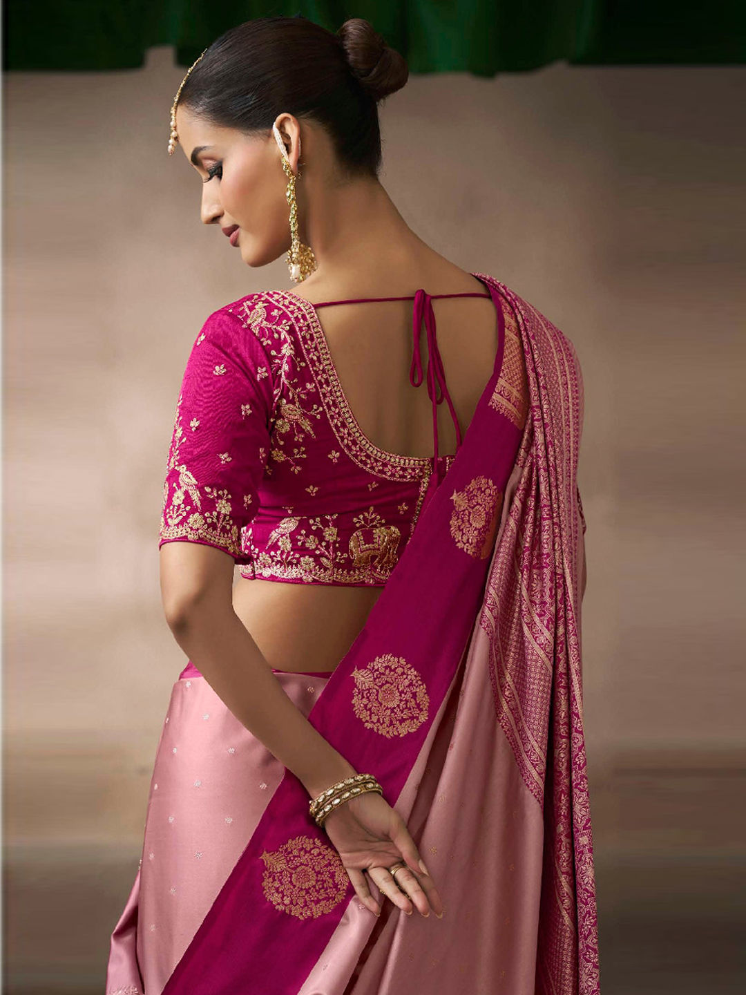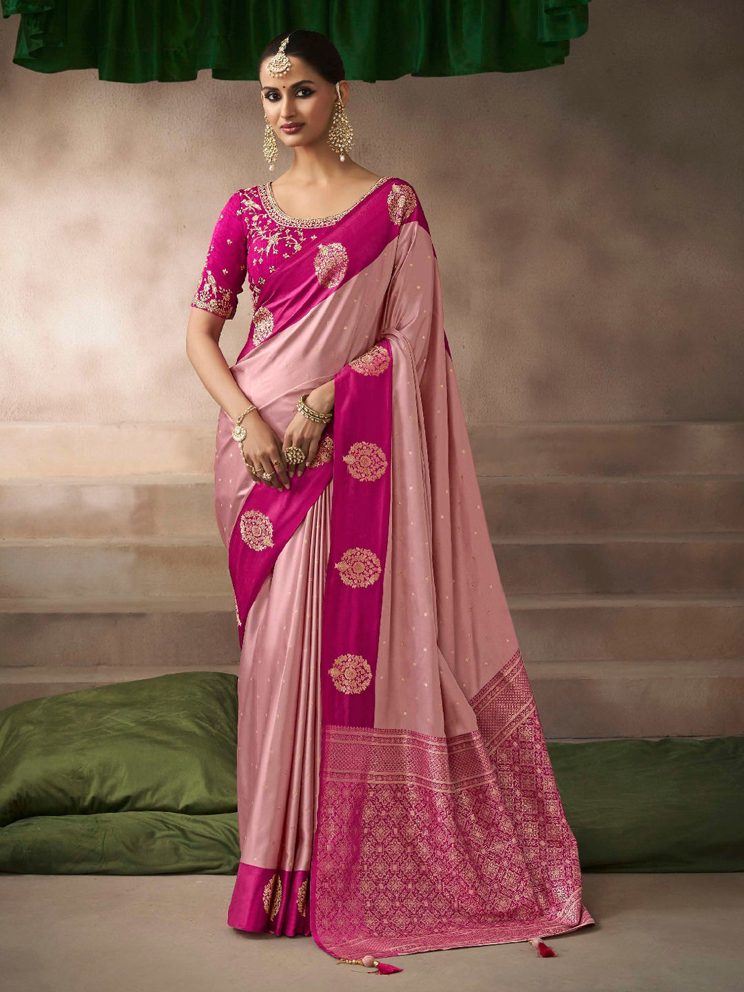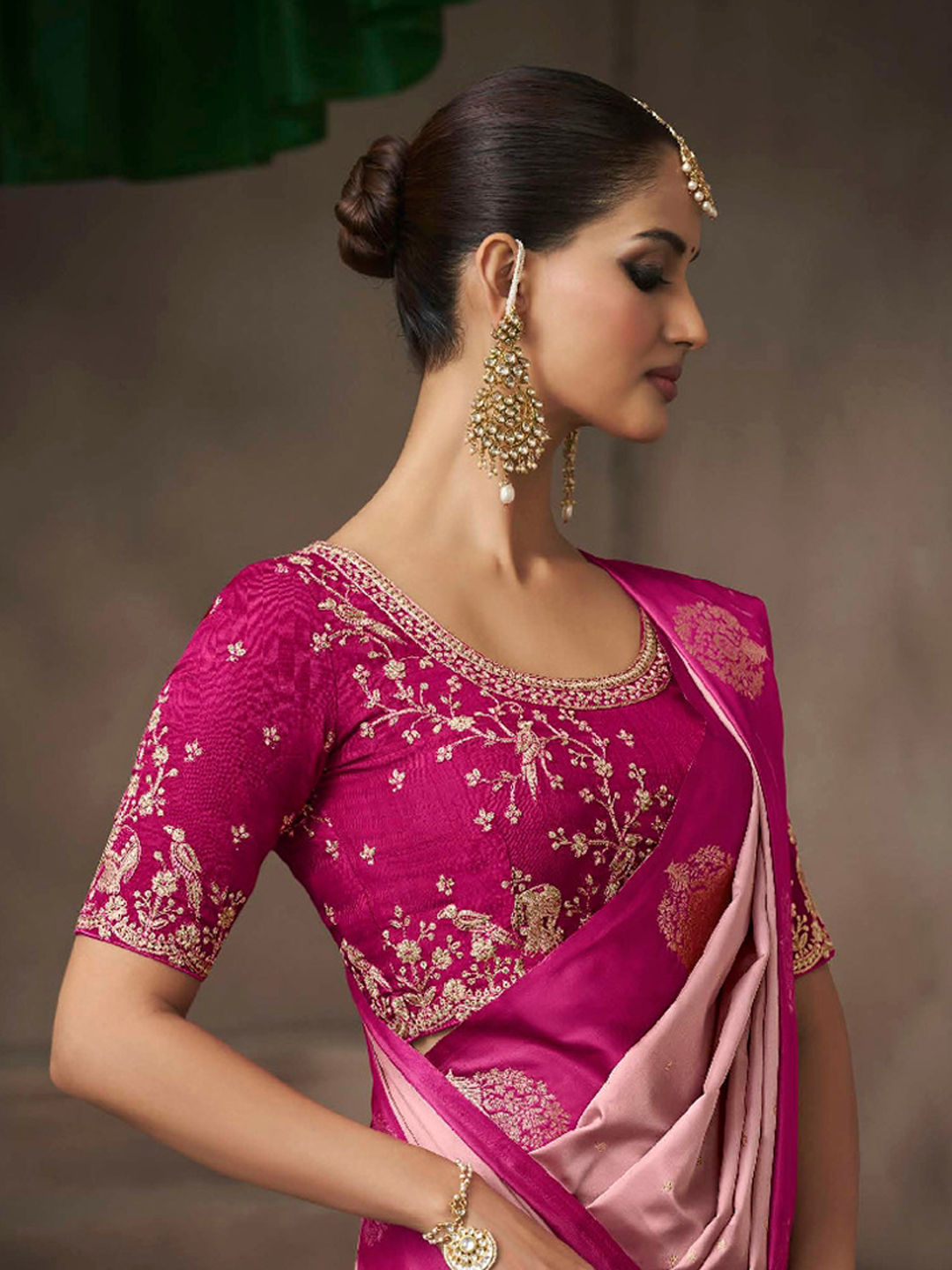 Art Silk Traditional Saree in Pink and Majenta with Printed work