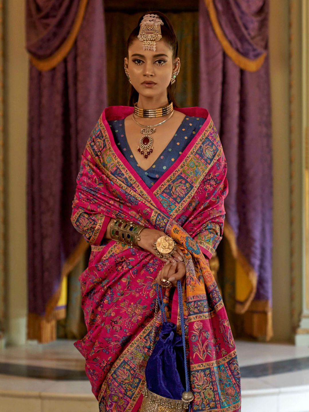 in Pink and Majenta with Printed work