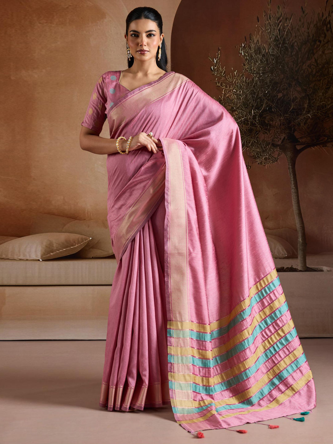 Art Silk Festive Saree in Pink and Majenta with Thread work