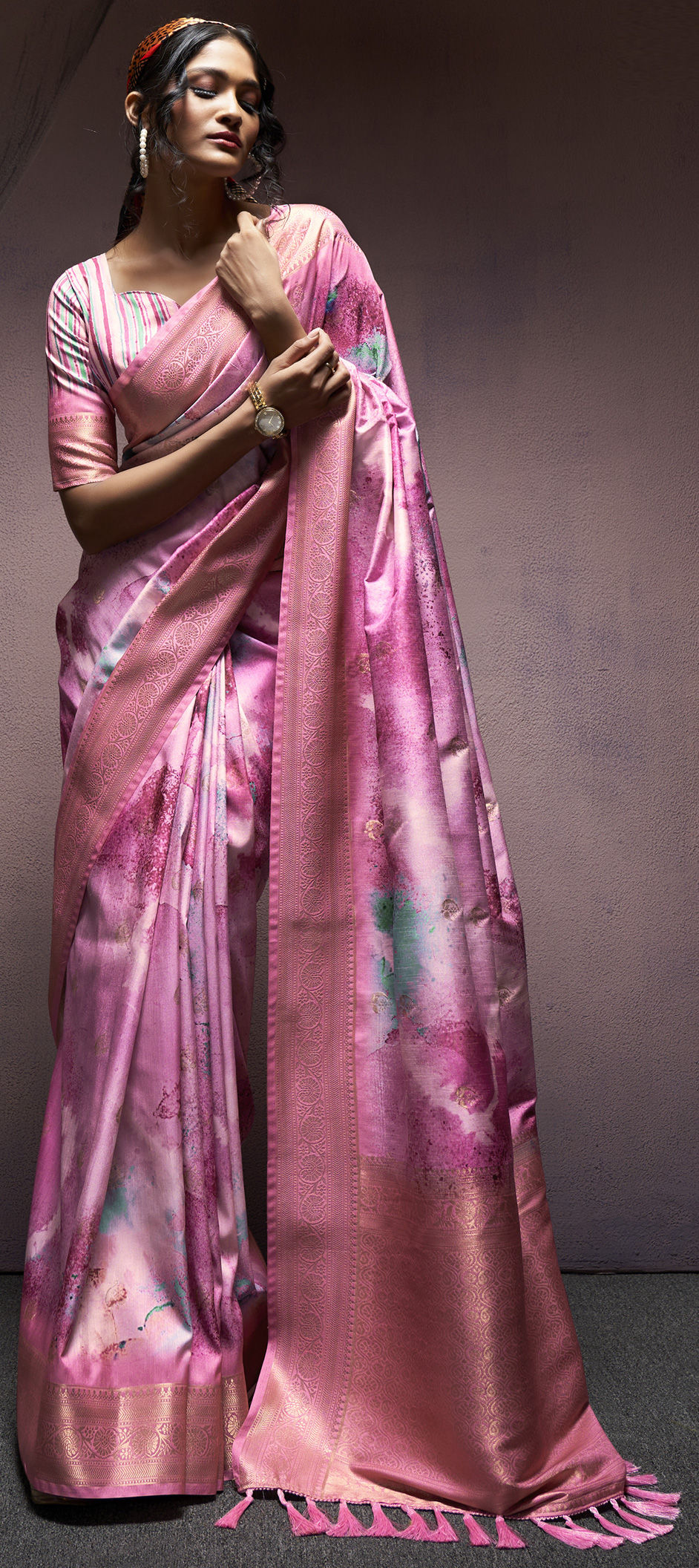 Pink and Majenta color Saree in Art Silk fabric with Digital Print, Weaving work