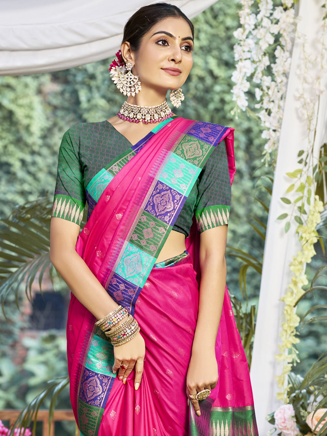 Pink and Majenta color Saree in Art Silk fabric with Weaving work