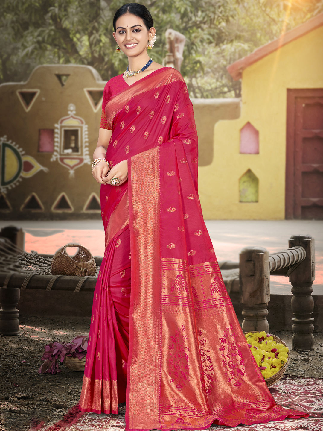 in Pink and Majenta with Zari work