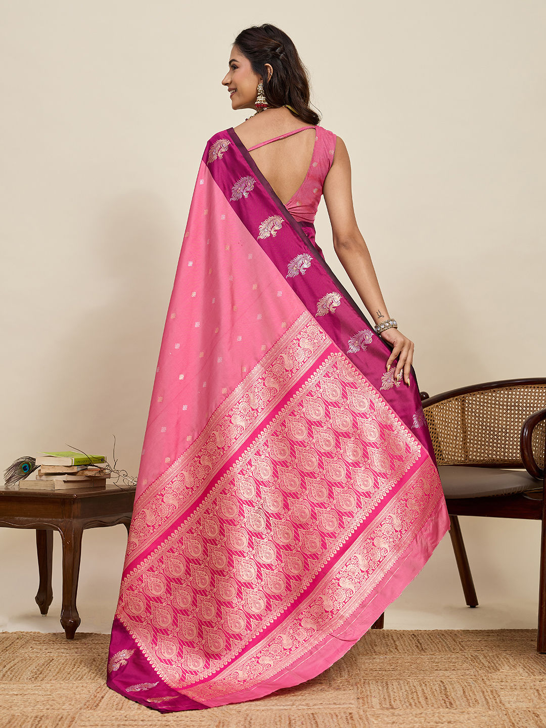 in Pink and Majenta with Zari work