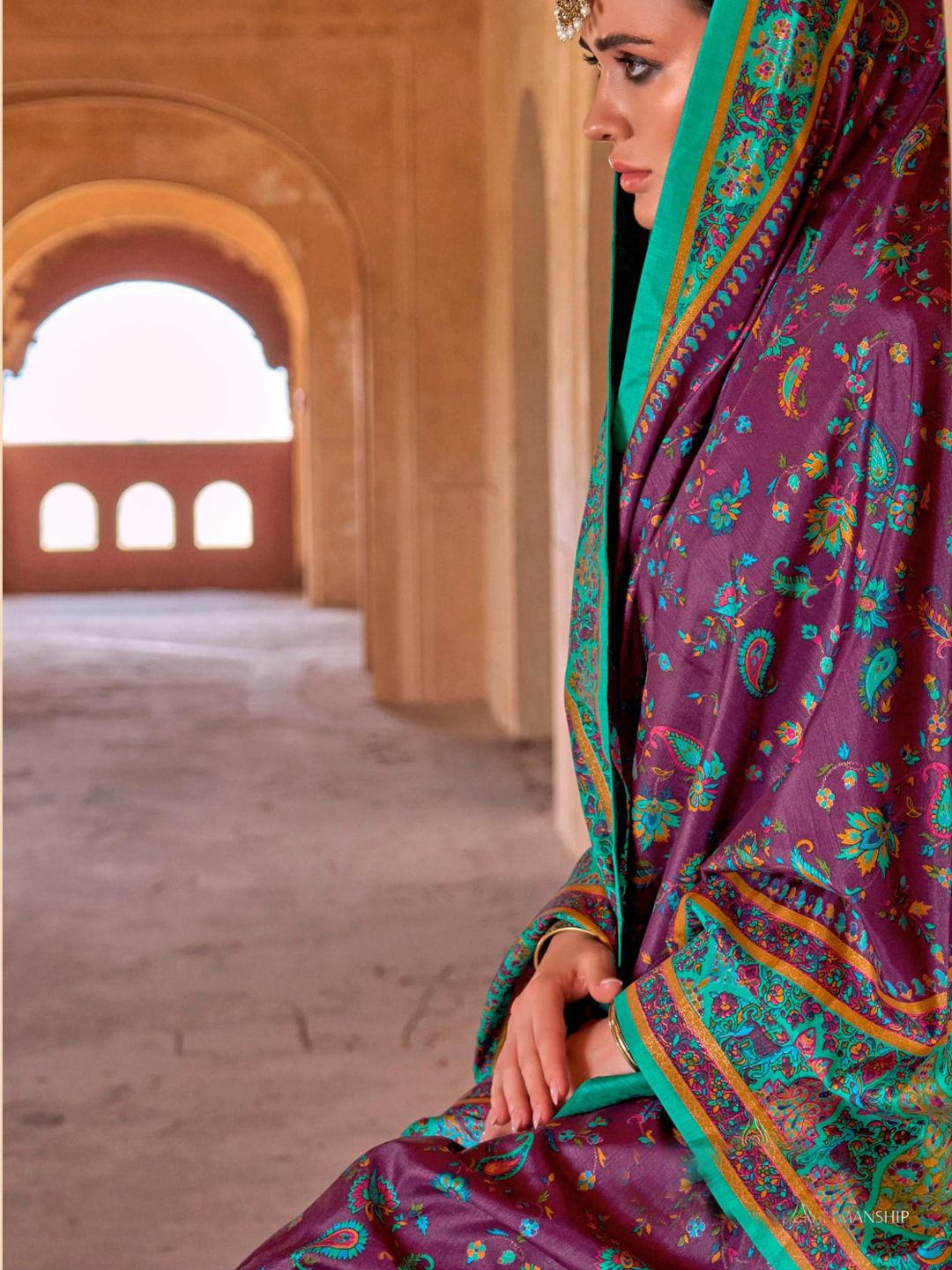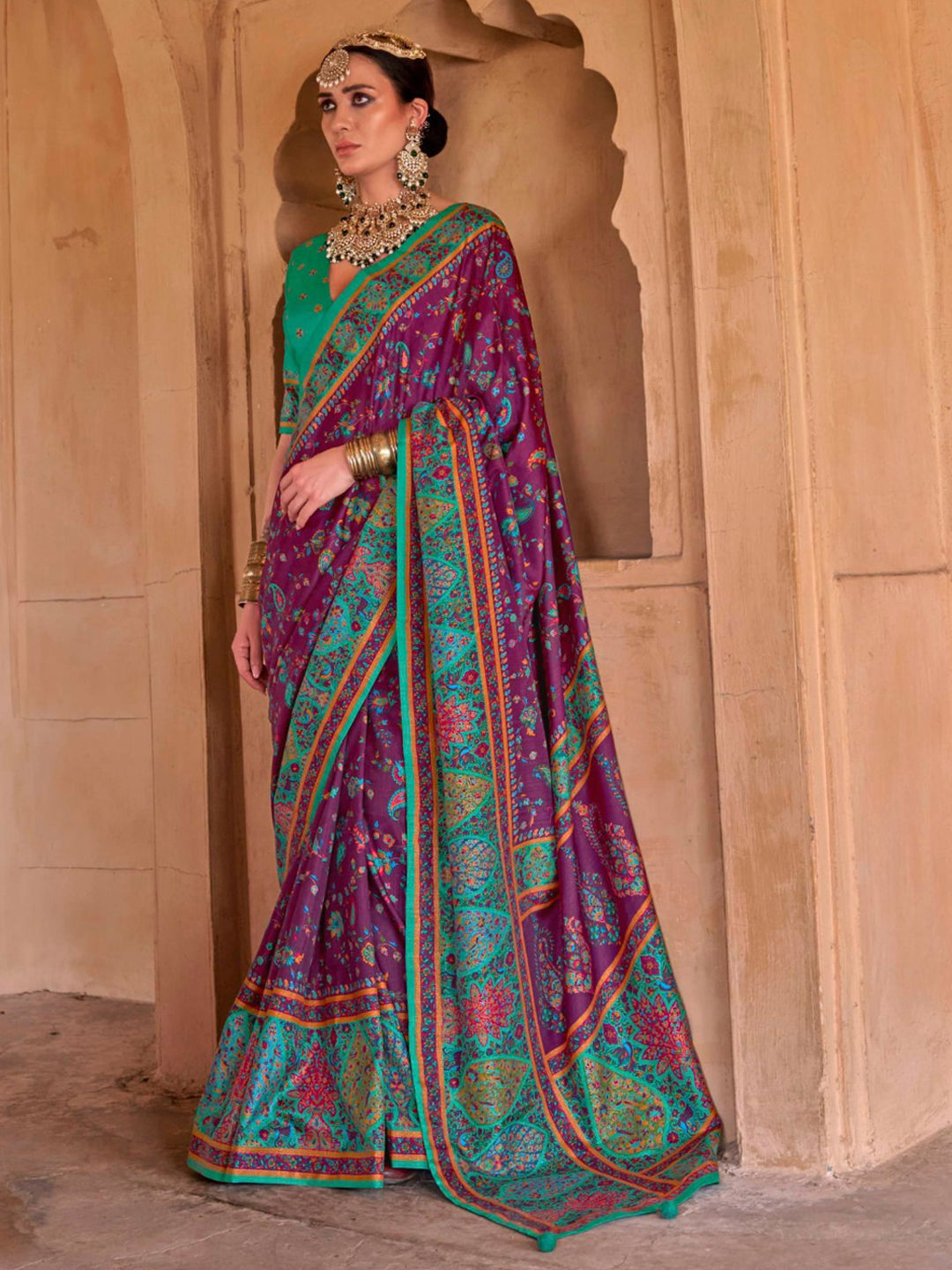 in Purple and Violet with Printed work