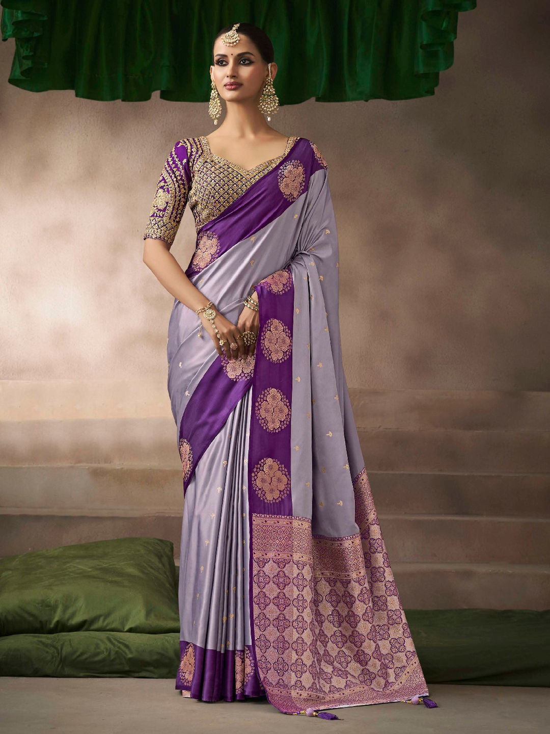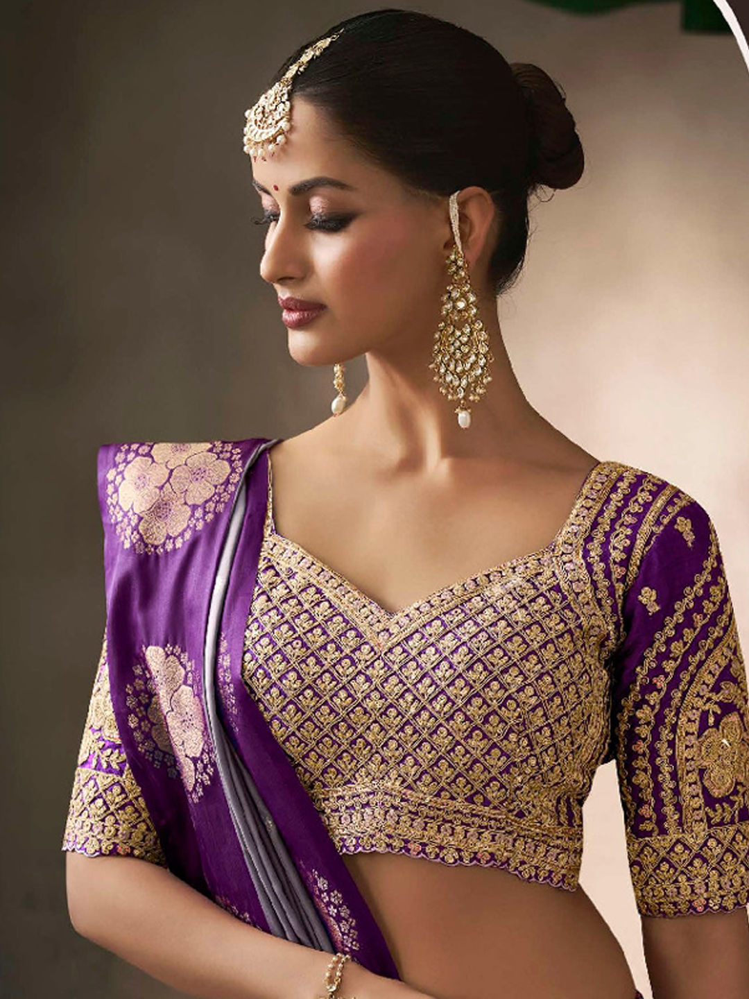 in Purple and Violet with Printed work
