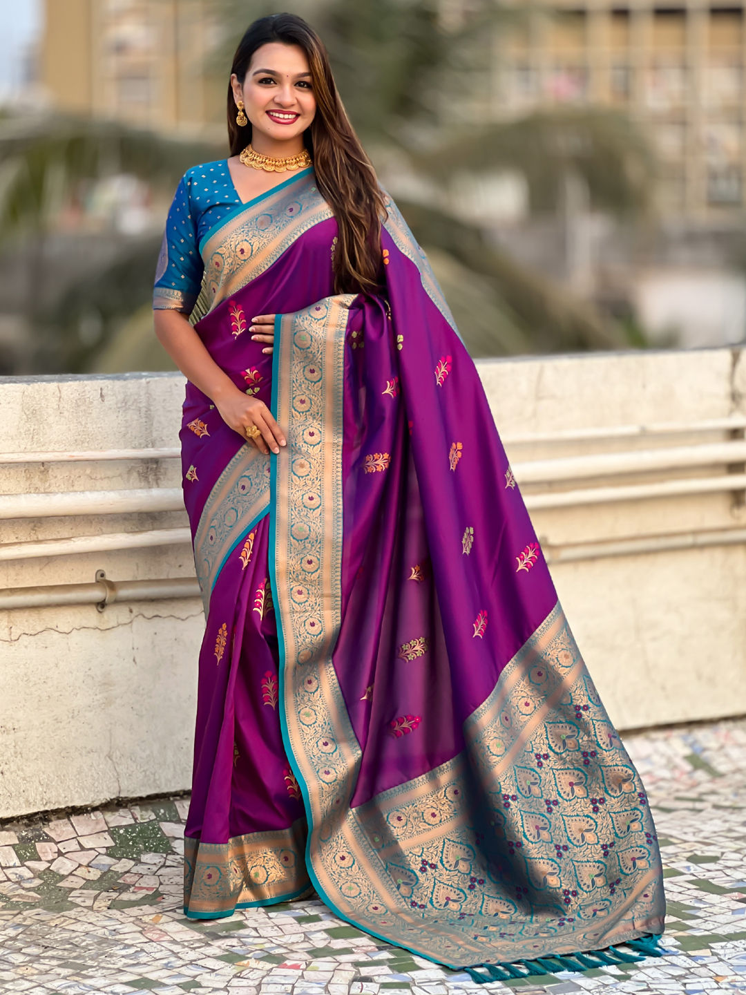 Purple and Violet color Saree in Art Silk fabric with Weaving work