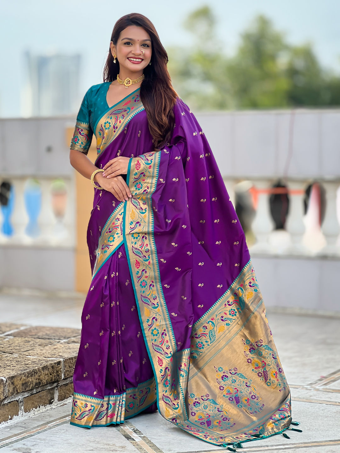 Purple and Violet color Saree in Art Silk fabric with Weaving work