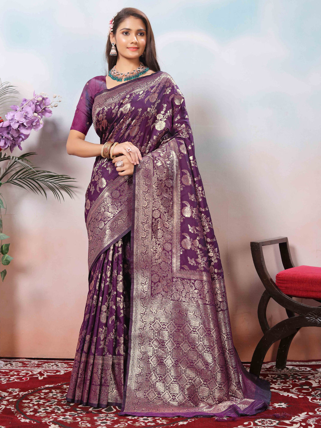 in Purple and Violet with Zari work