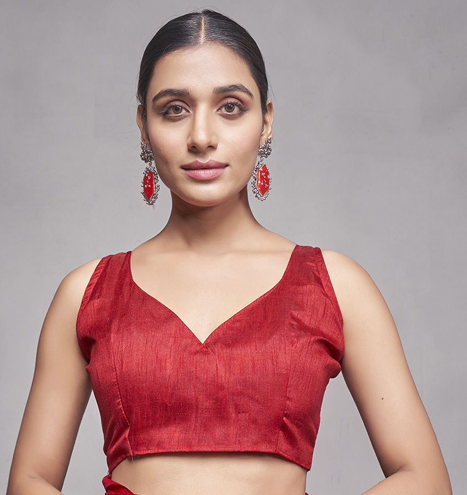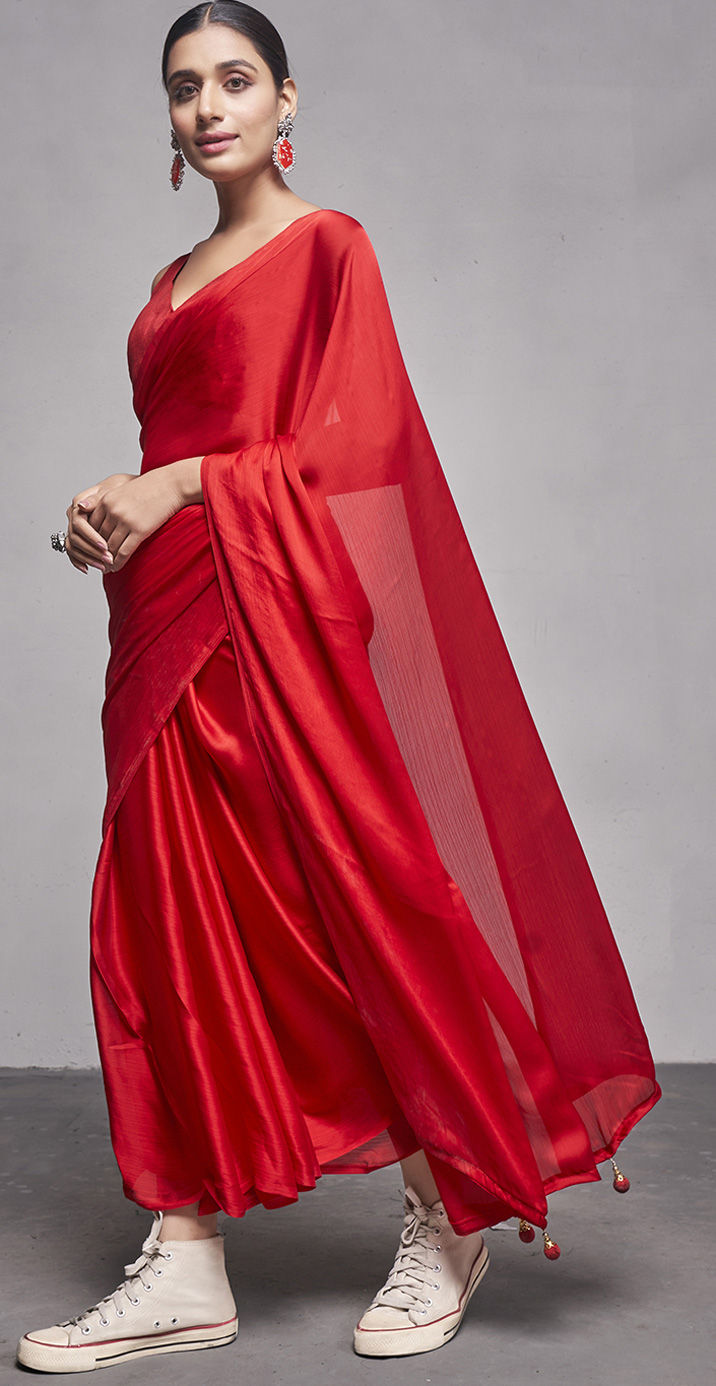 Red and Maroon color Saree in Art Silk fabric with Thread work