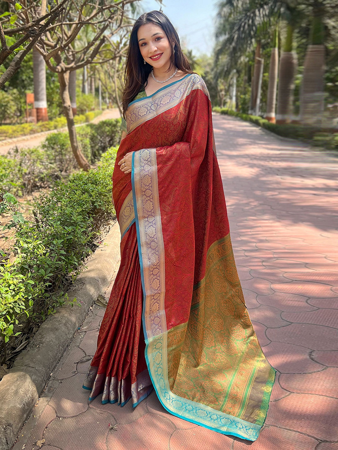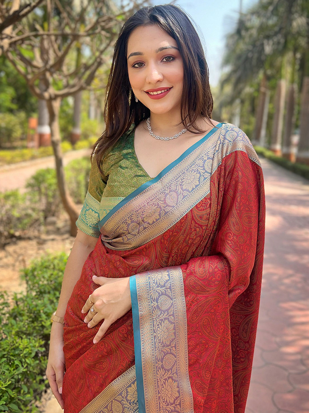 in Red and Maroon with Weaving work