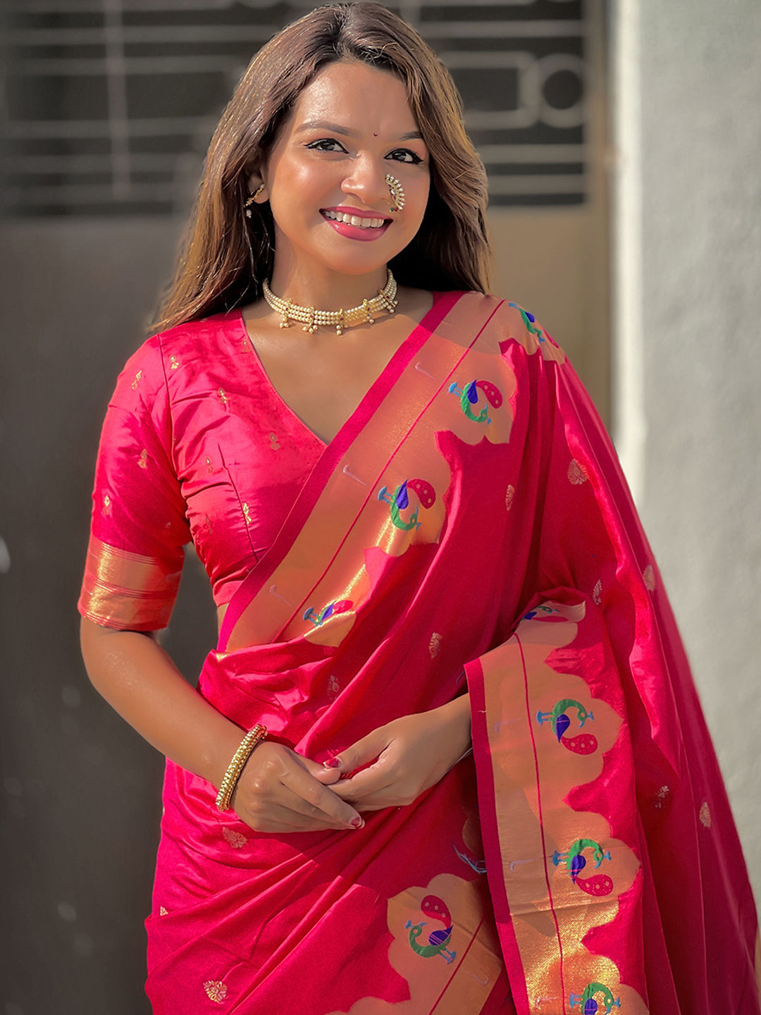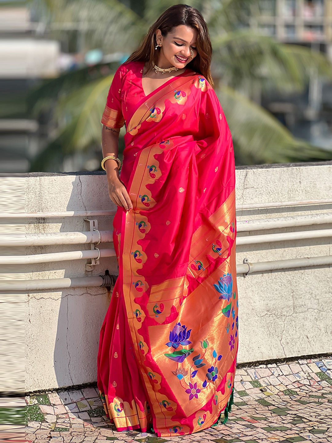 Red and Maroon color Saree in Art Silk fabric with Weaving work