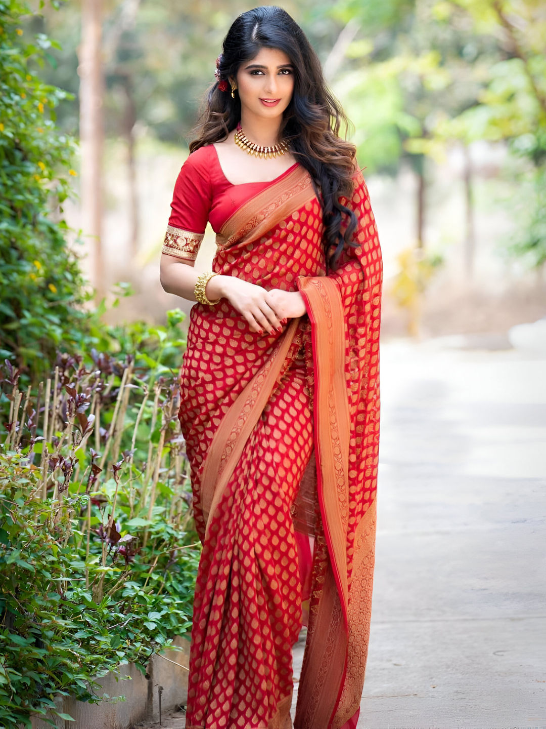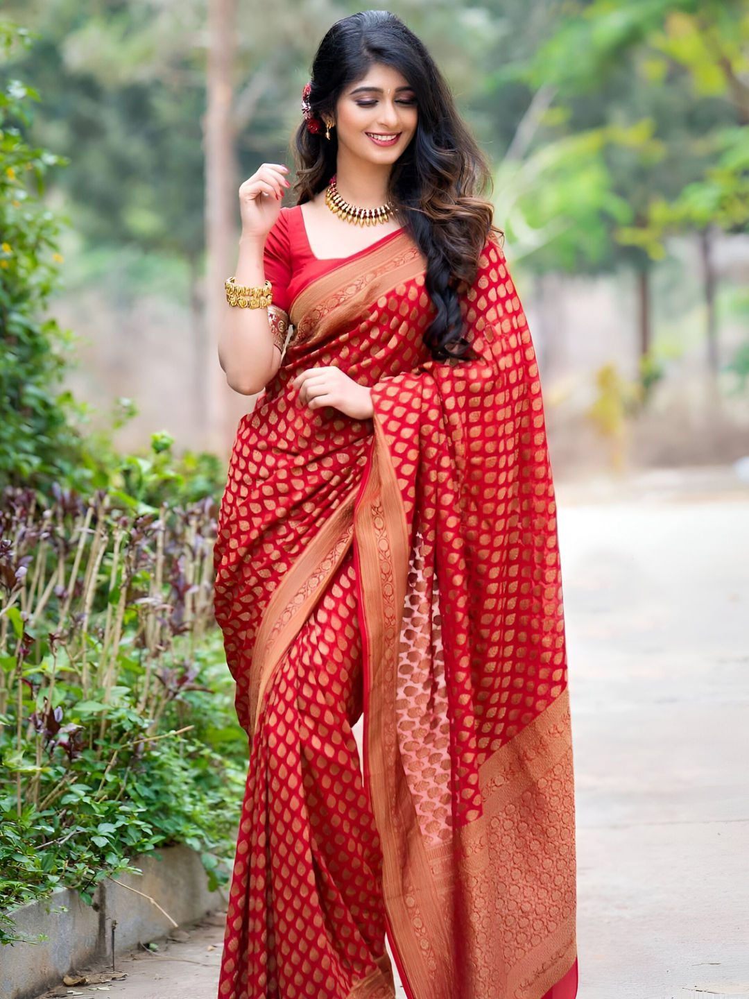 in Red and Maroon with Weaving work