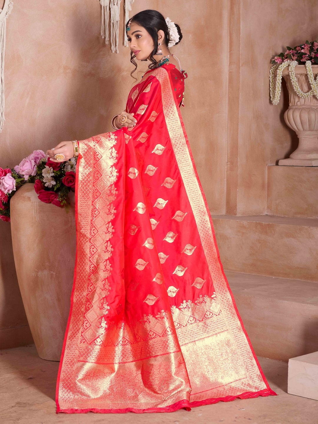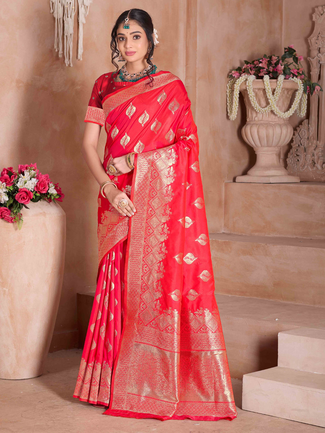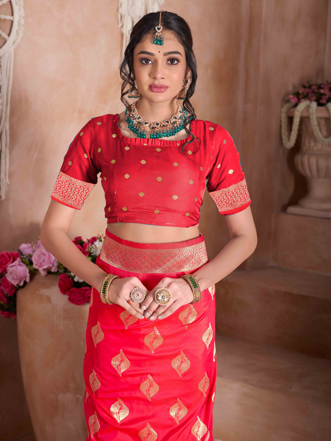 in Red and Maroon with Zari work