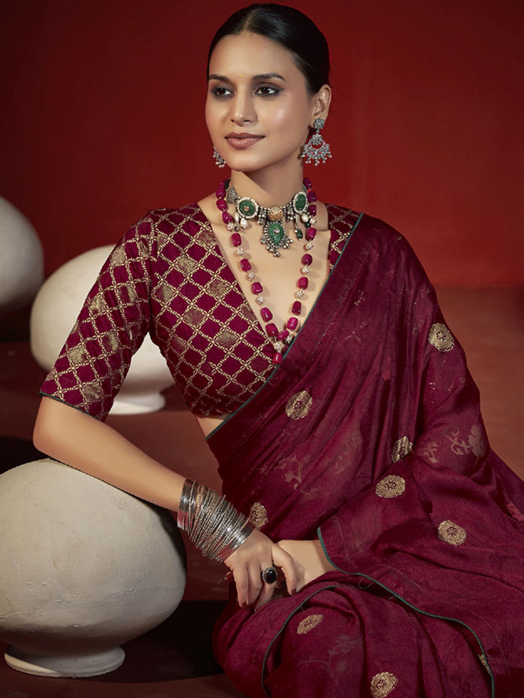 Red and Maroon color Saree in Art Silk fabric with Zari work