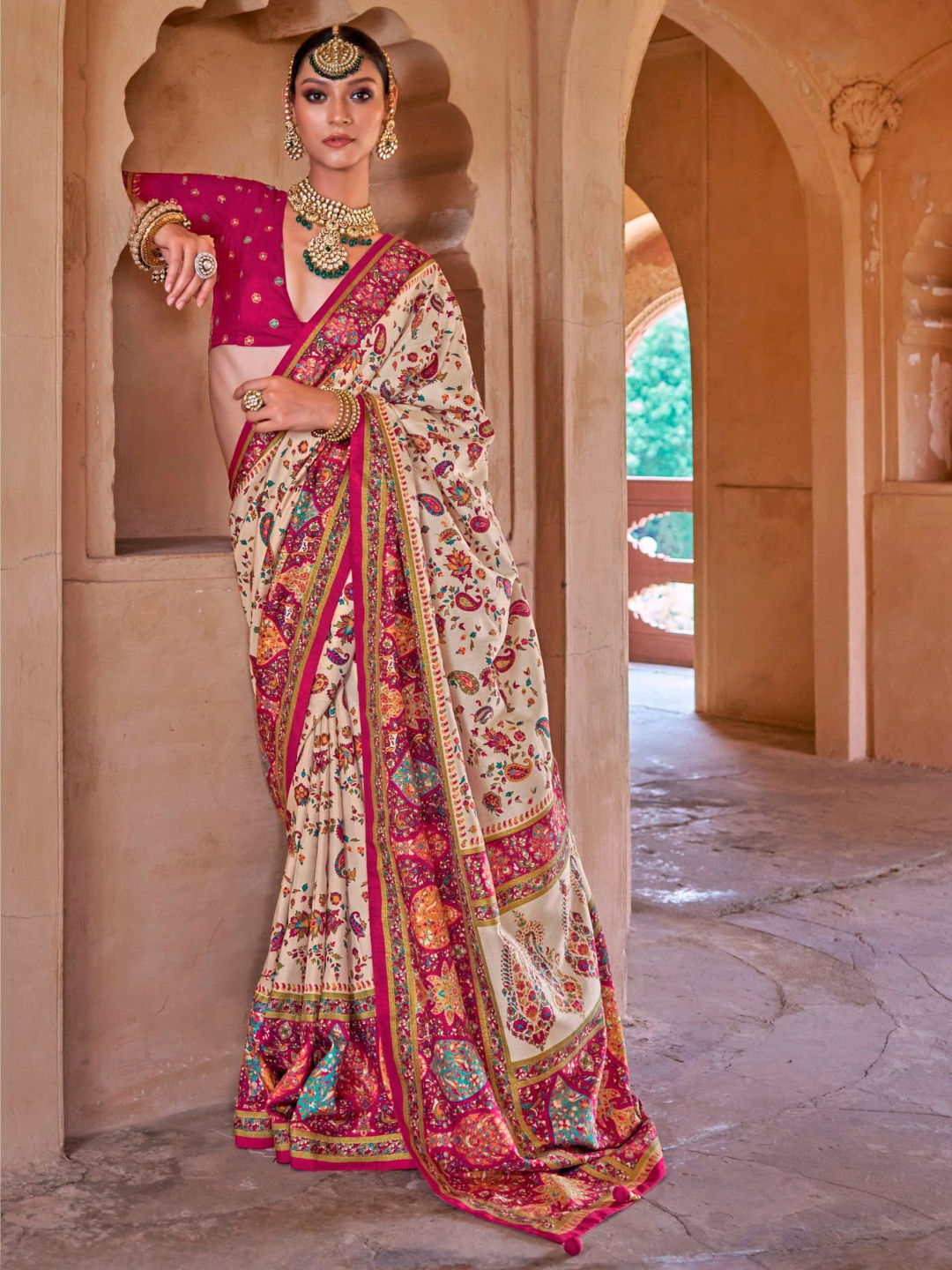 Art Silk Traditional Saree in Pink and Majenta with Printed work