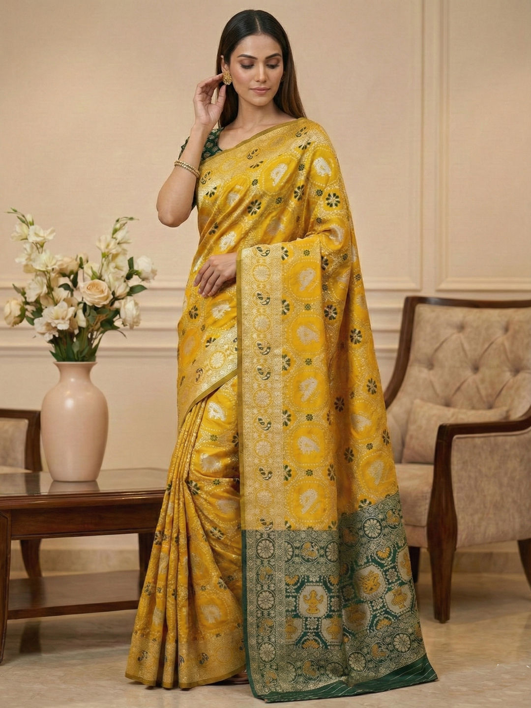 Yellow color Saree in Art Silk fabric with Weaving work