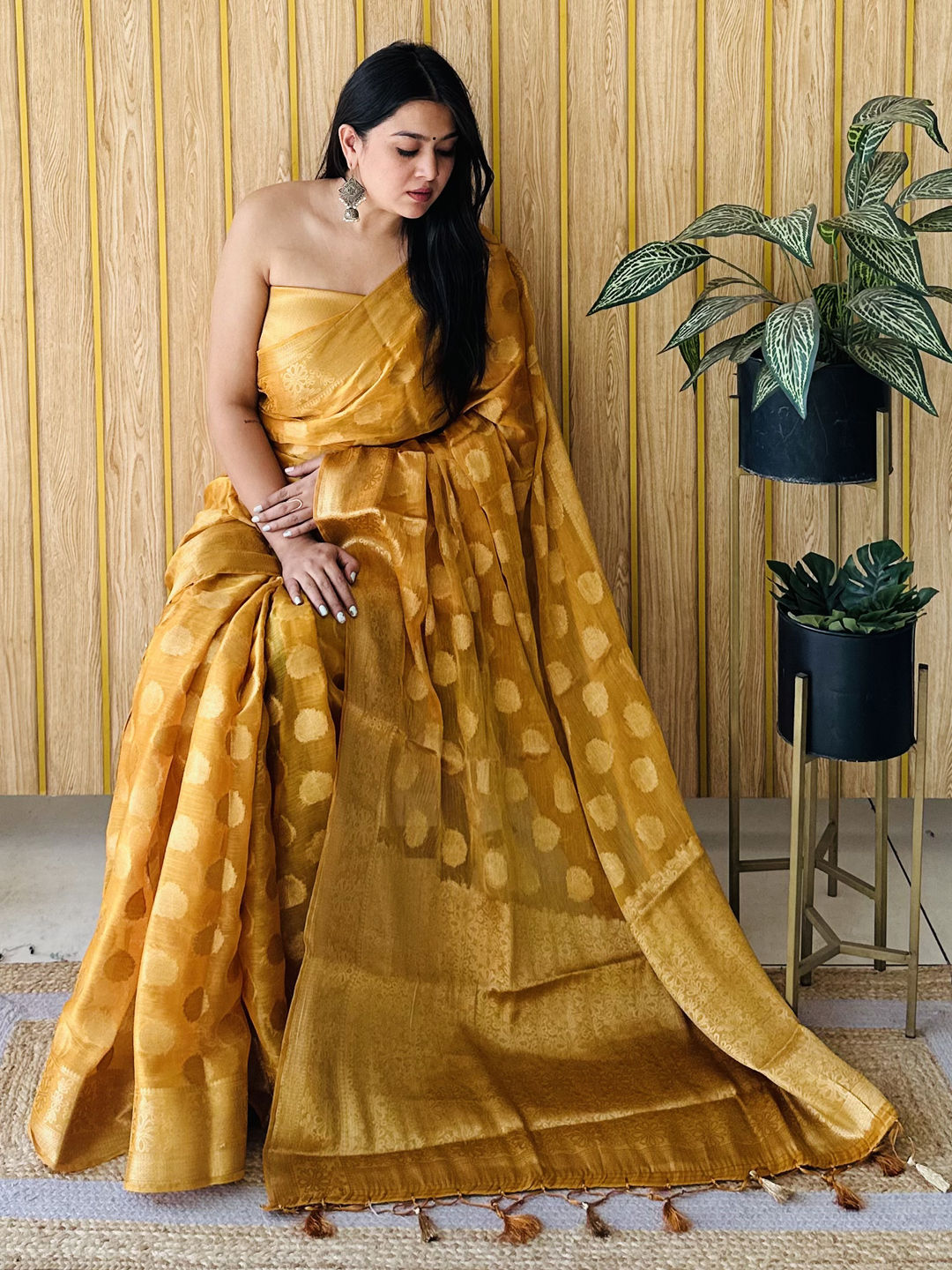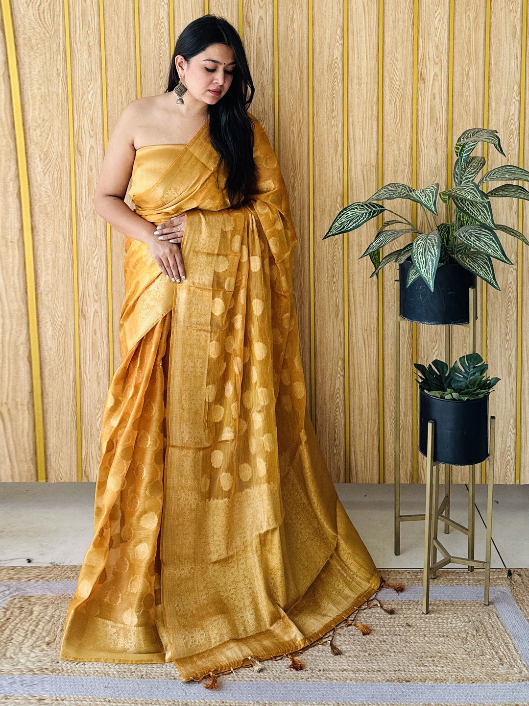 Yellow color Saree in Art Silk fabric with Weaving, Zari work