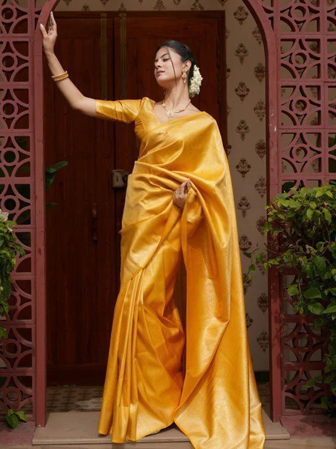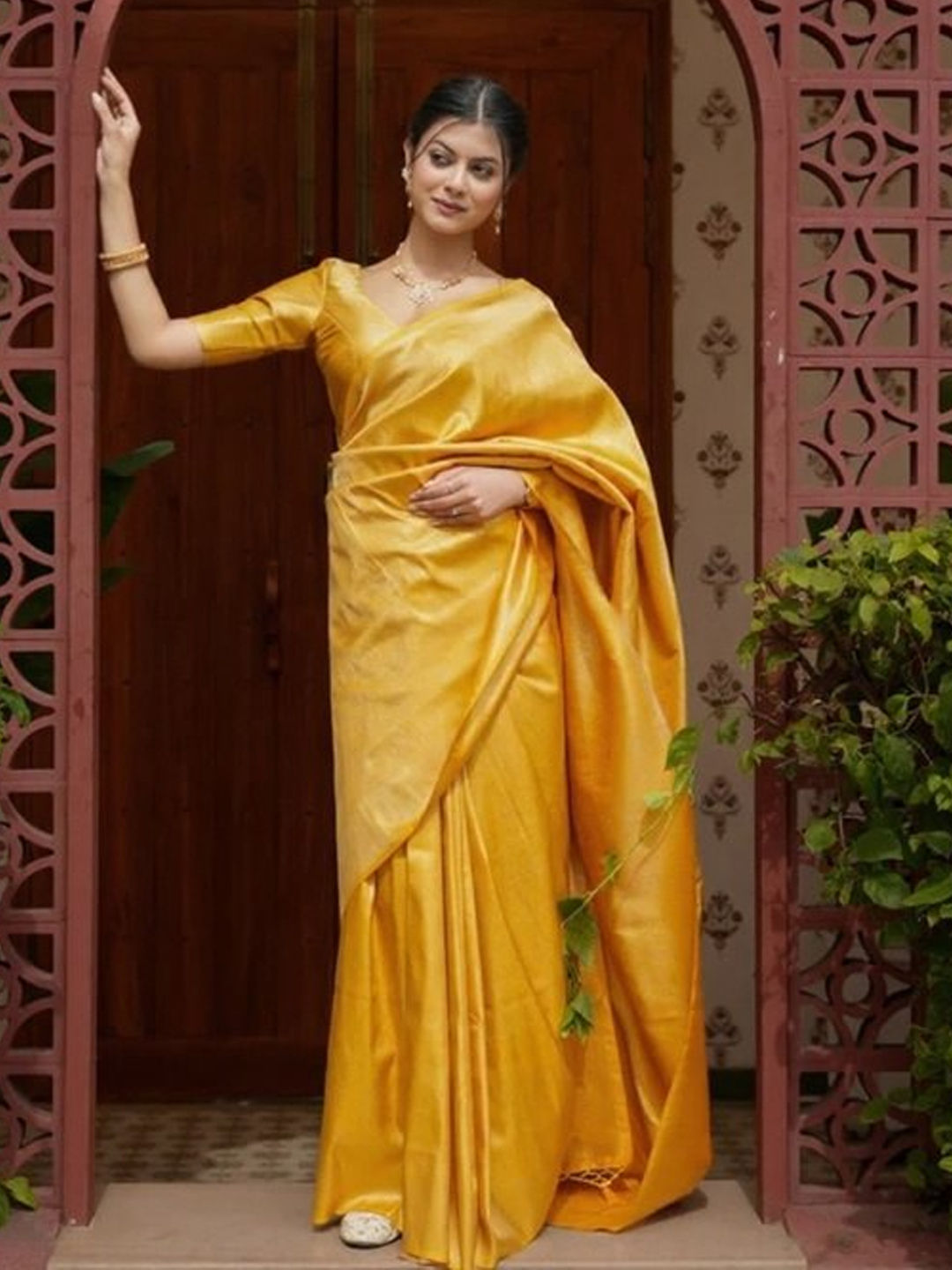 in Yellow with Zari work