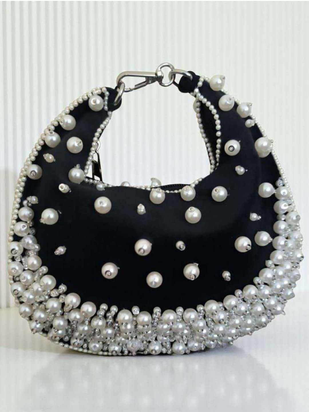Art Silk Wedding Clutches in White and Off White with Moti work