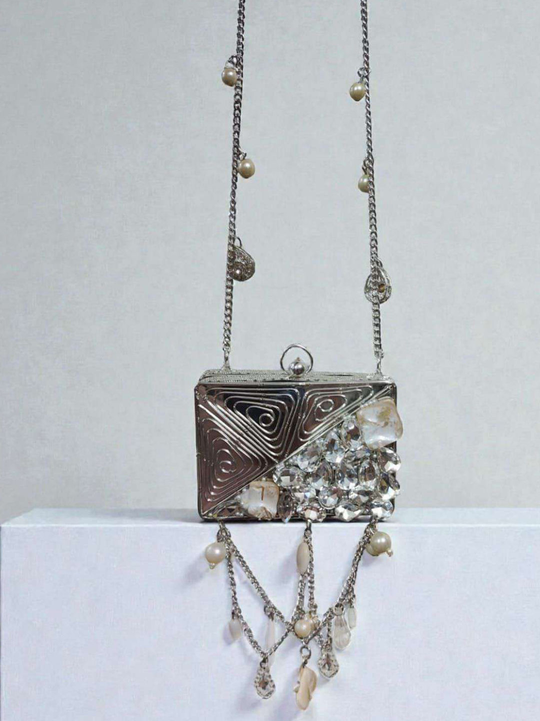 Art Silk Wedding Clutches in White and Off White with Moti work