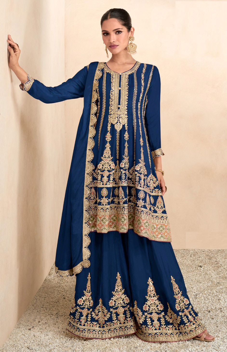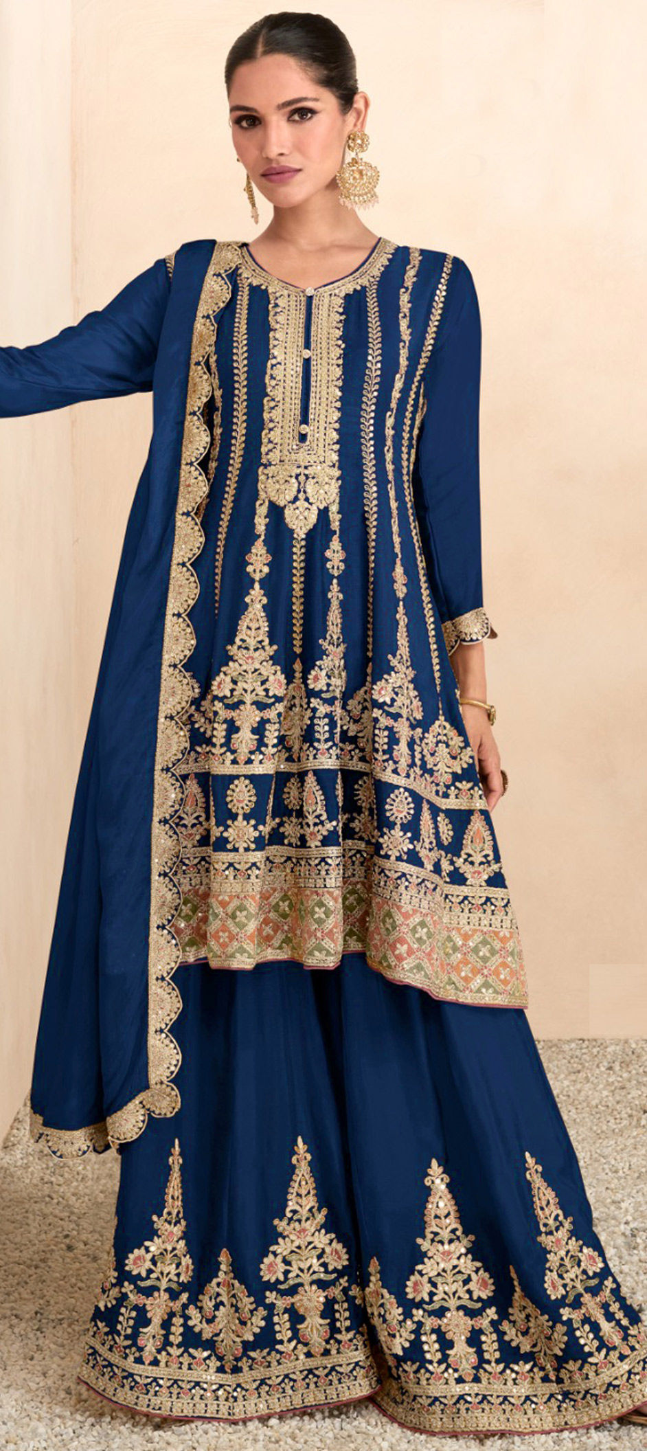 Blue color Salwar Kameez in Art Silk fabric with Embroidered, Sequence, Thread work