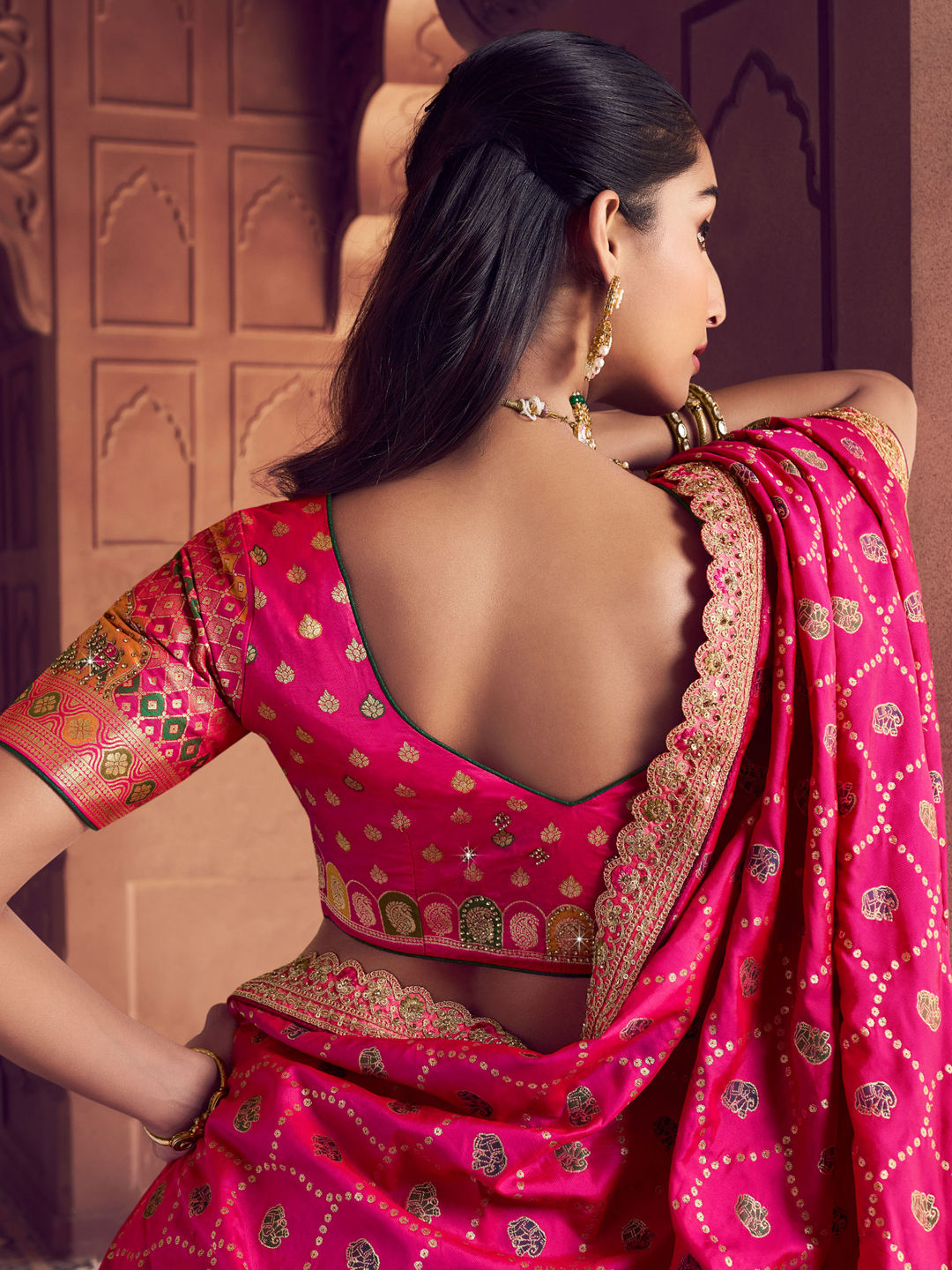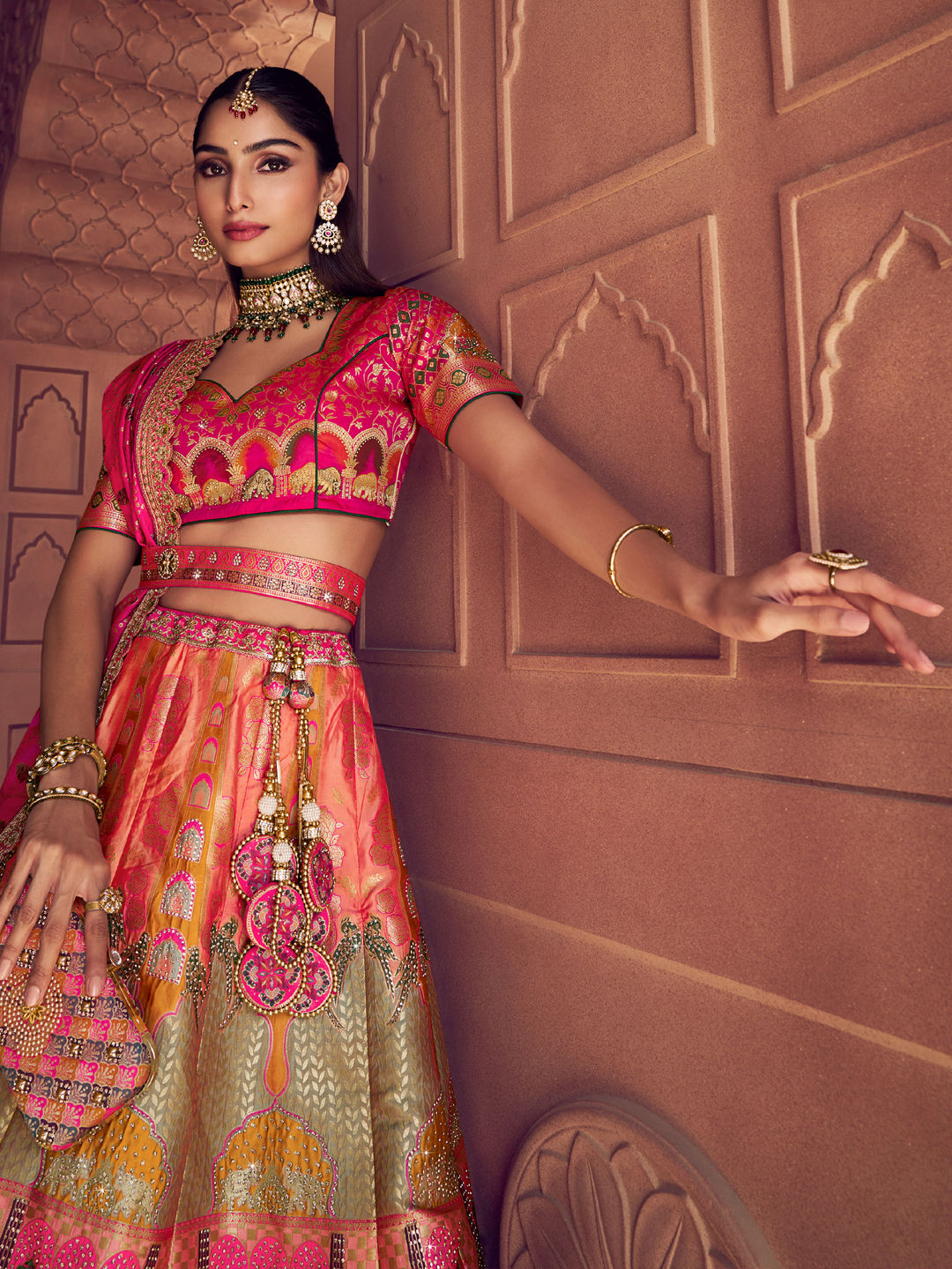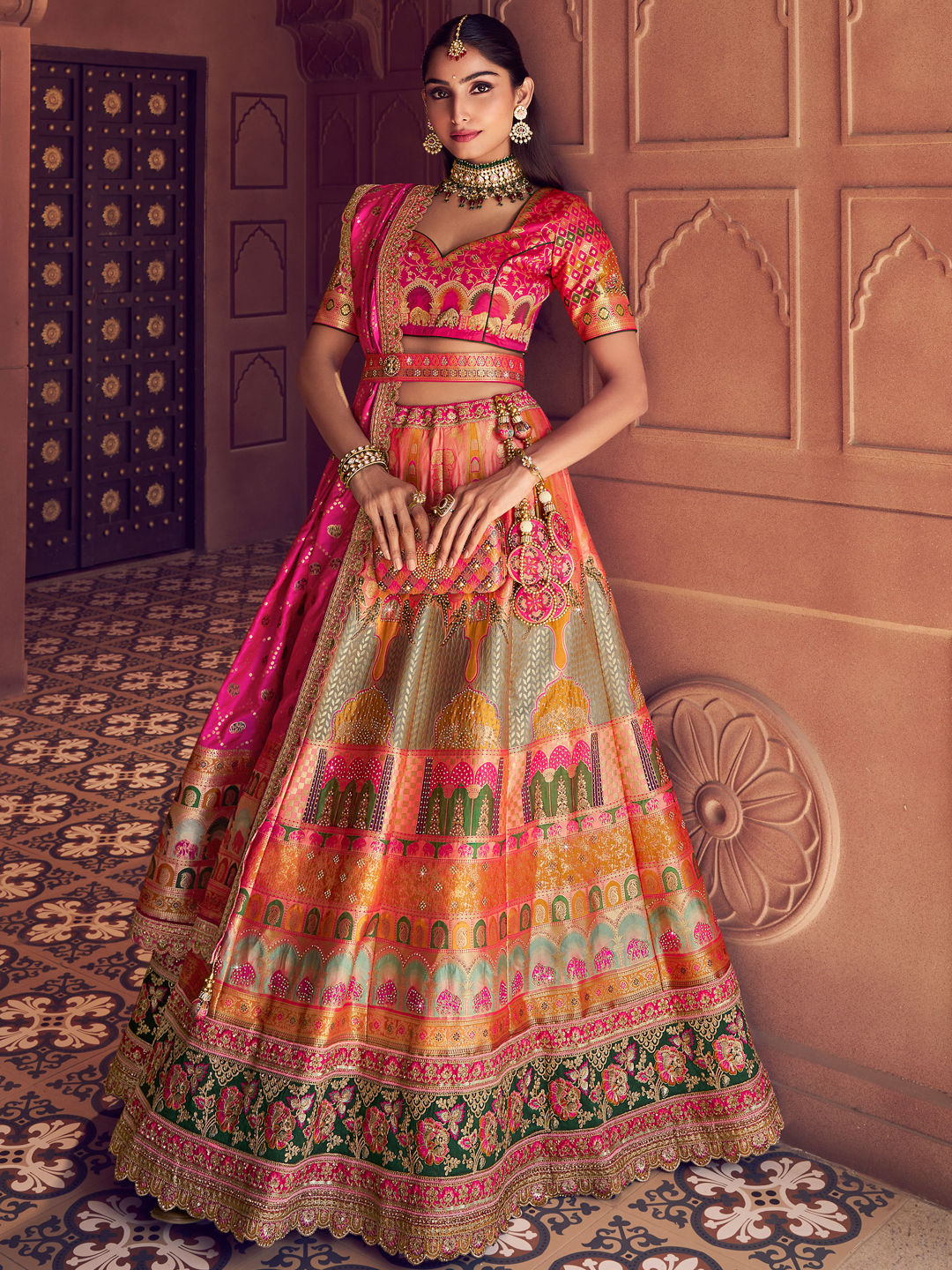 Banarasi Silk Bridal Lehenga in Pink and Majenta with Embroidered work