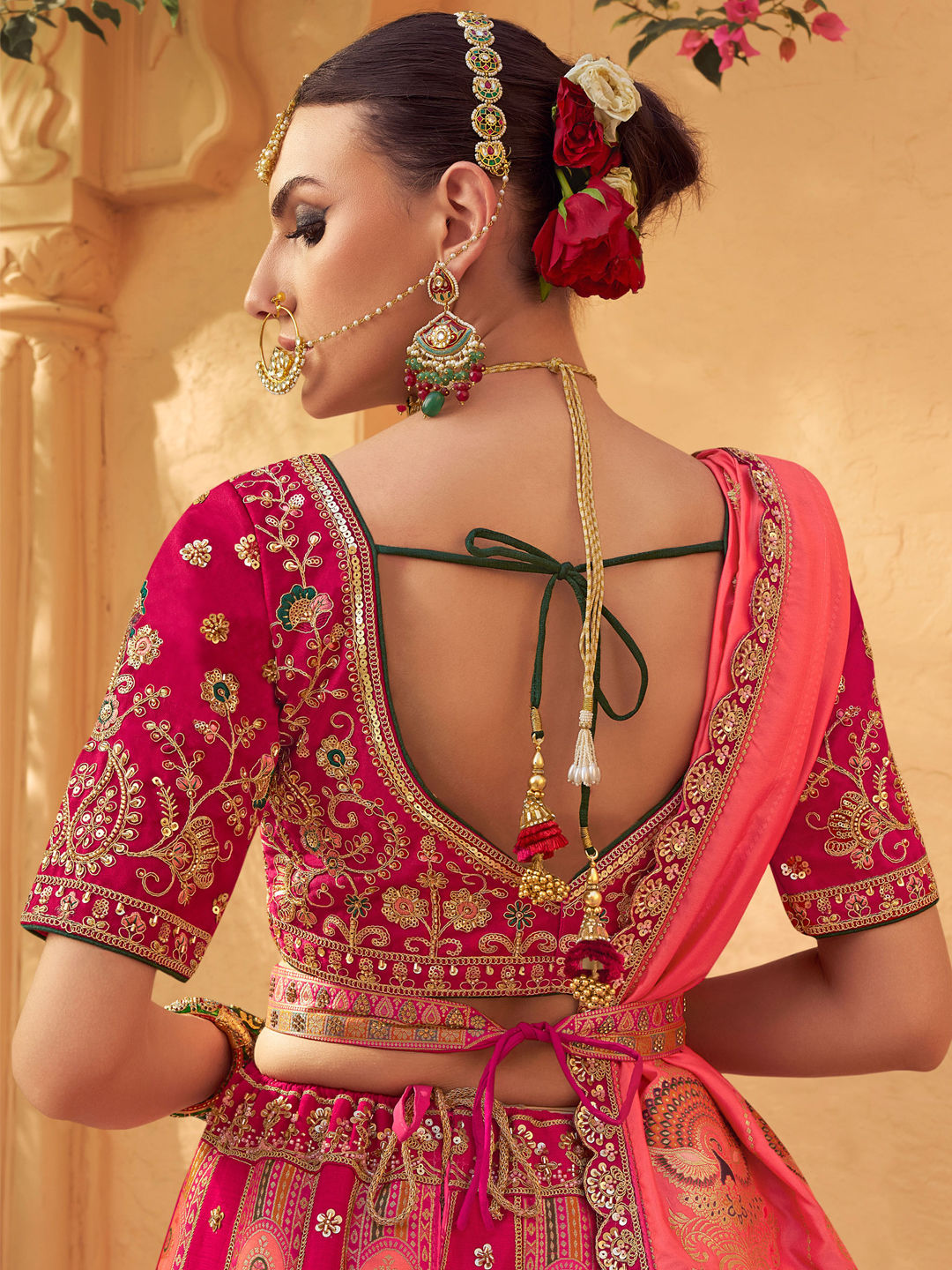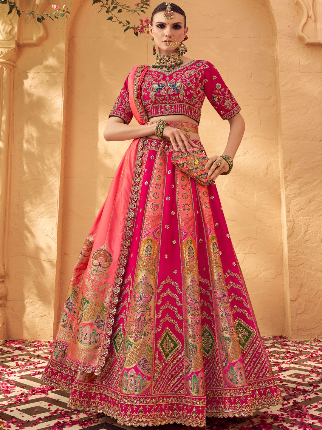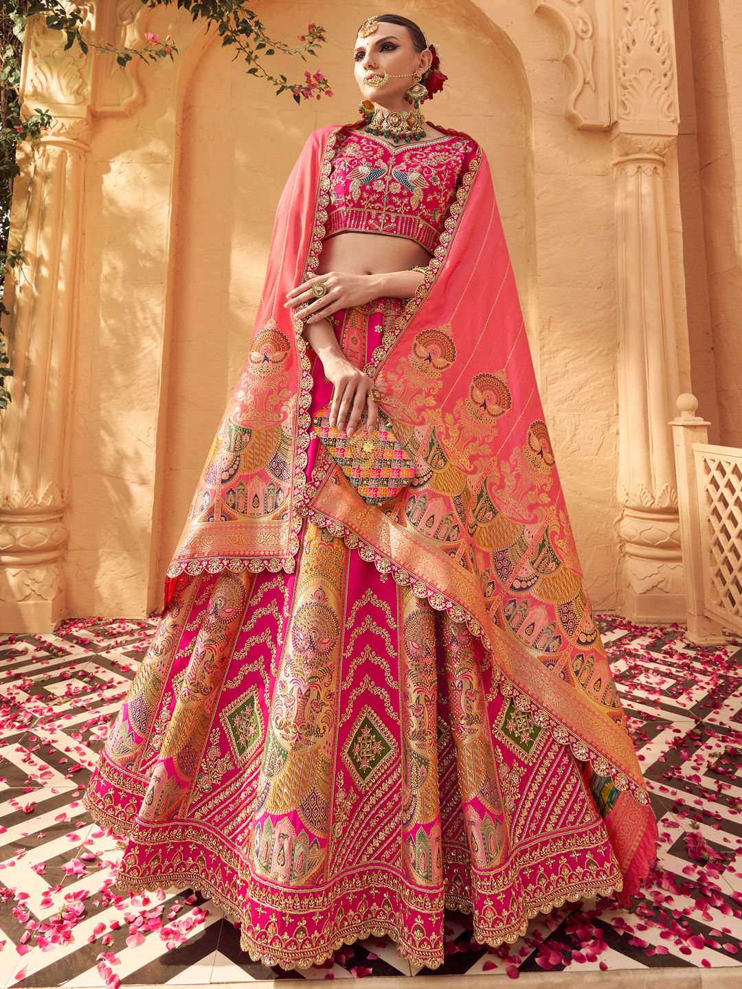 Banarasi Silk Wedding Lehenga in Pink and Majenta with Zari work
