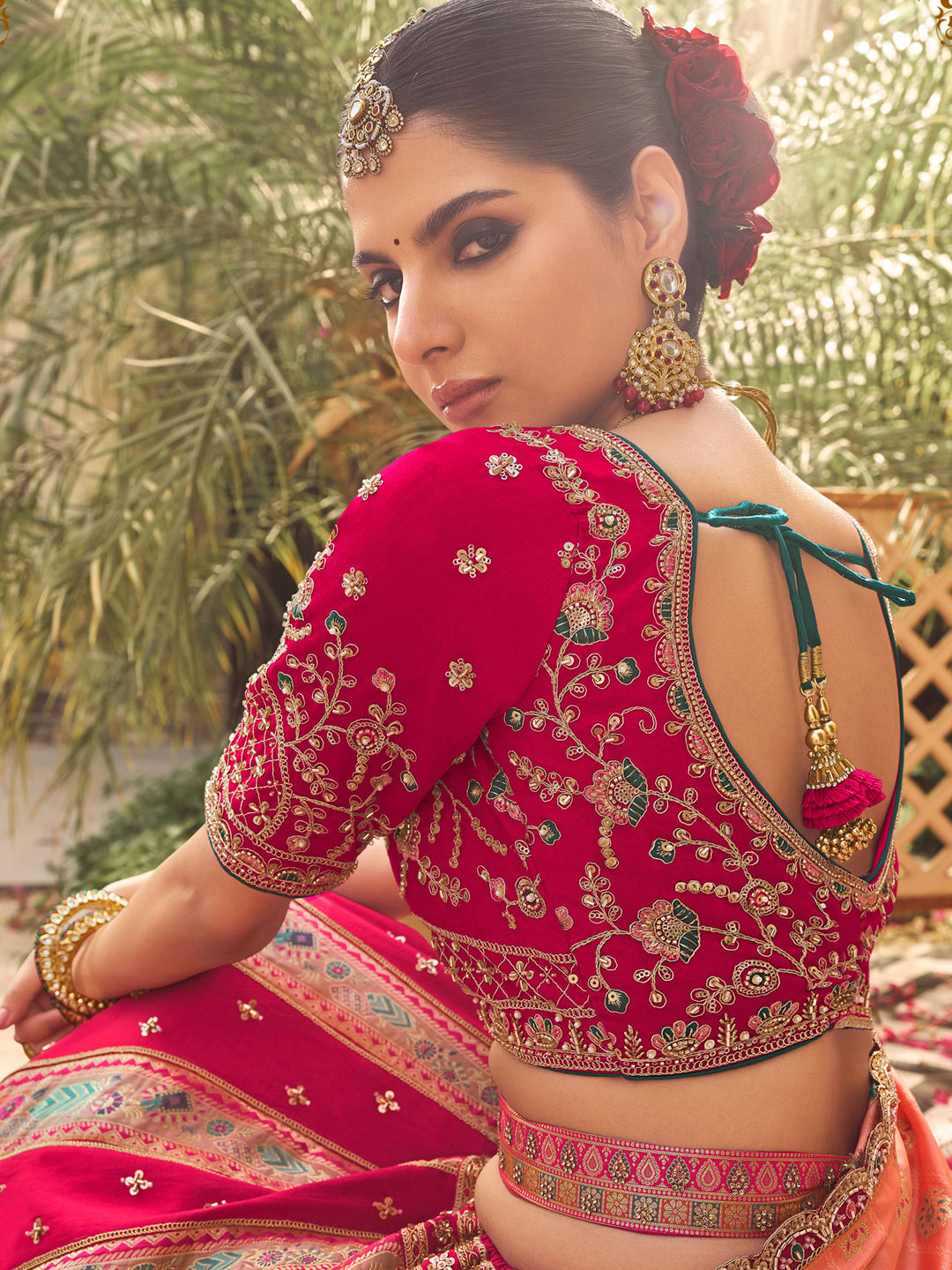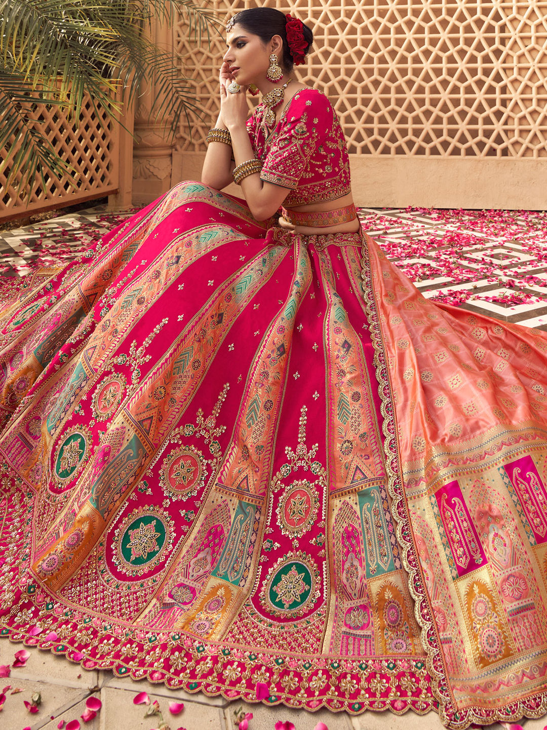 Banarasi Silk Wedding Lehenga in Pink and Majenta with Zari work