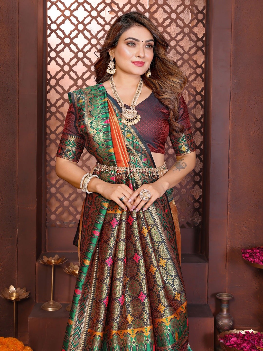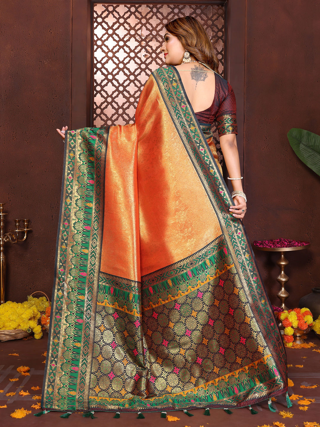 Orange color Saree in Banarasi Silk, Tissue fabric with Weaving work