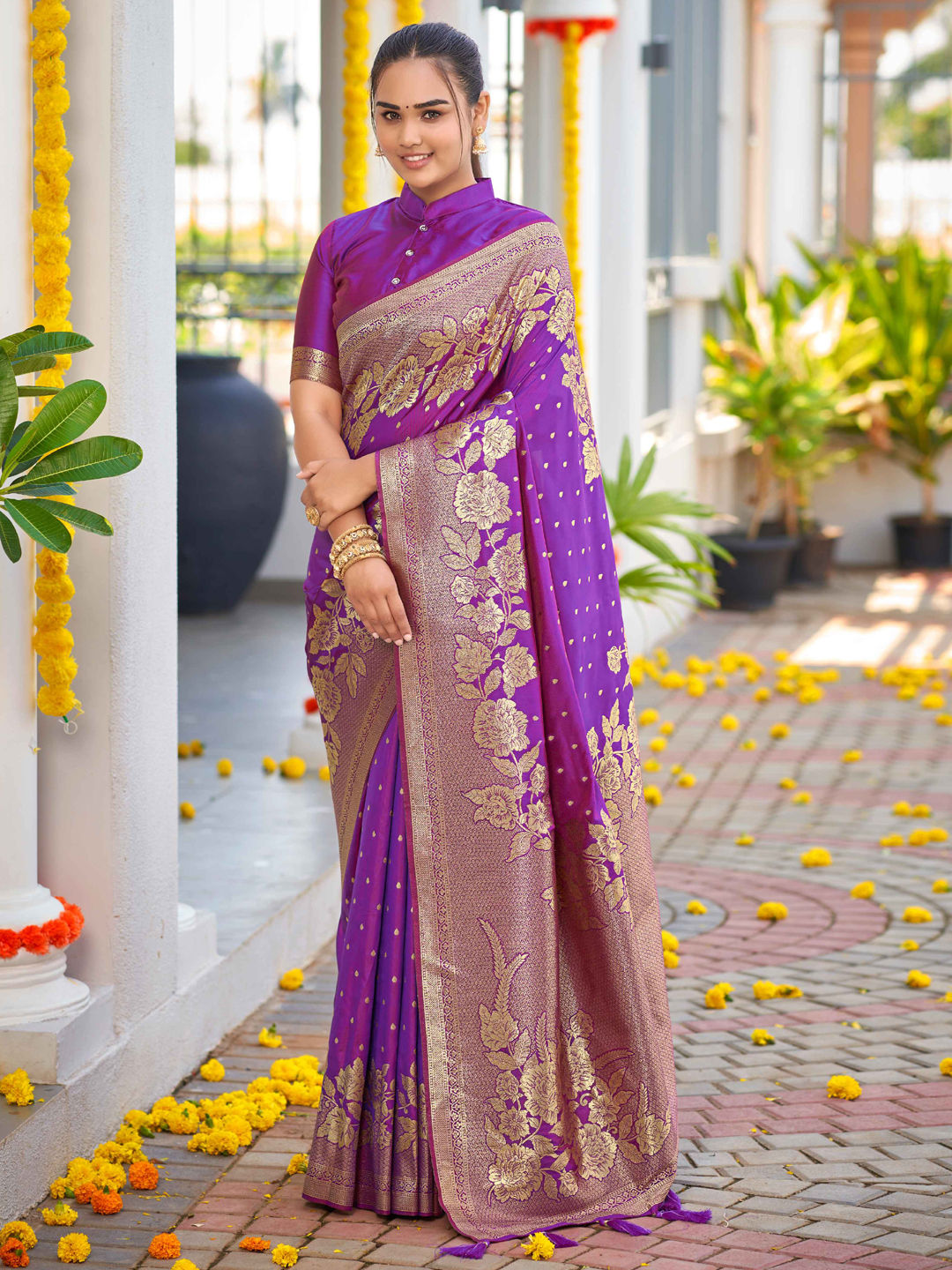 Purple and Violet color Saree in Banarasi Silk fabric with Weaving work