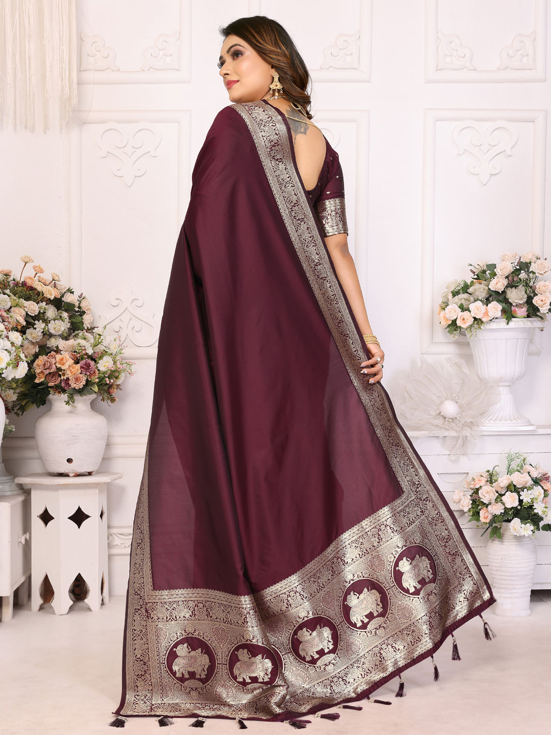 Red and Maroon color Saree in Banarasi Silk fabric with Weaving, Zari work