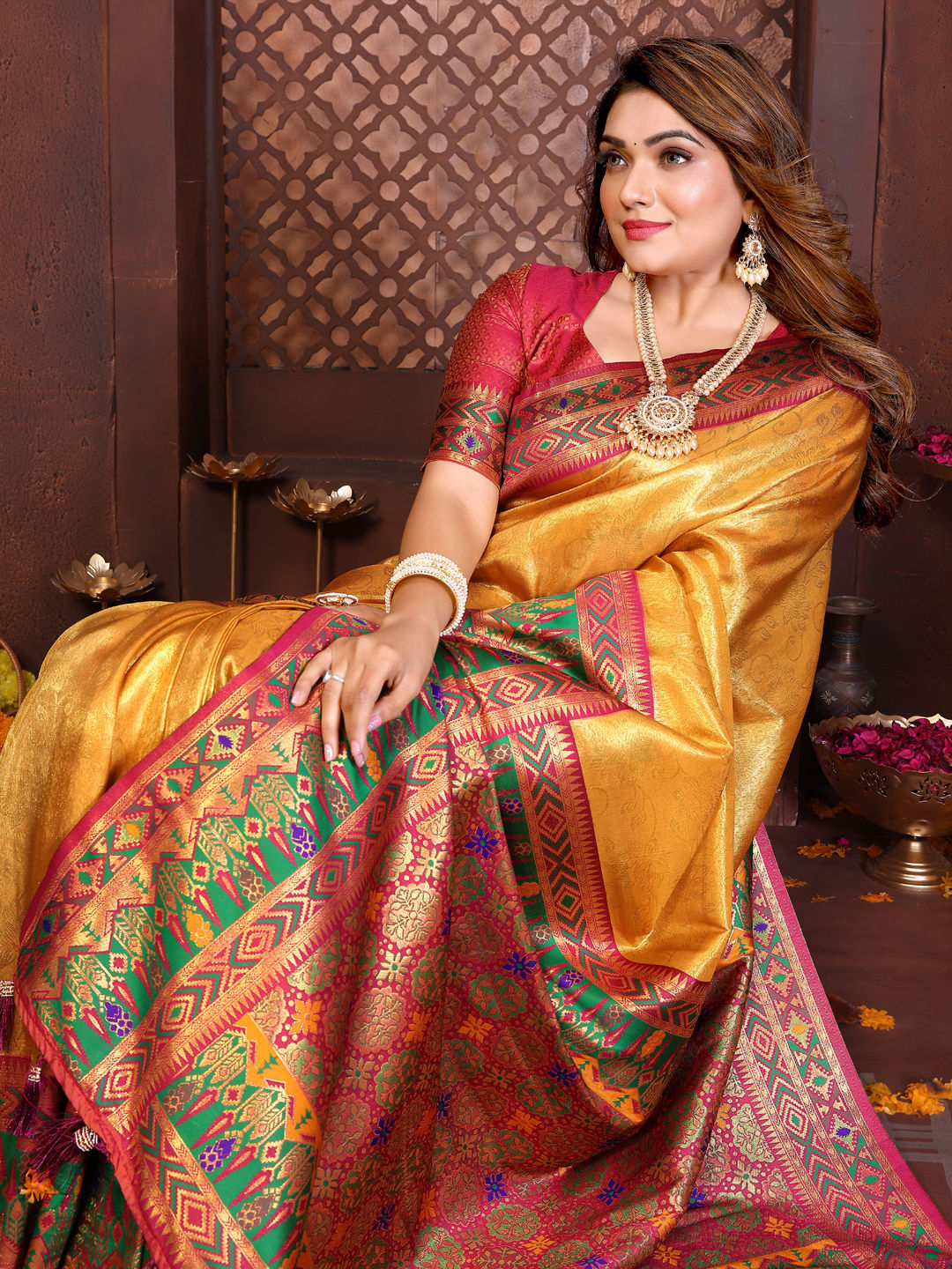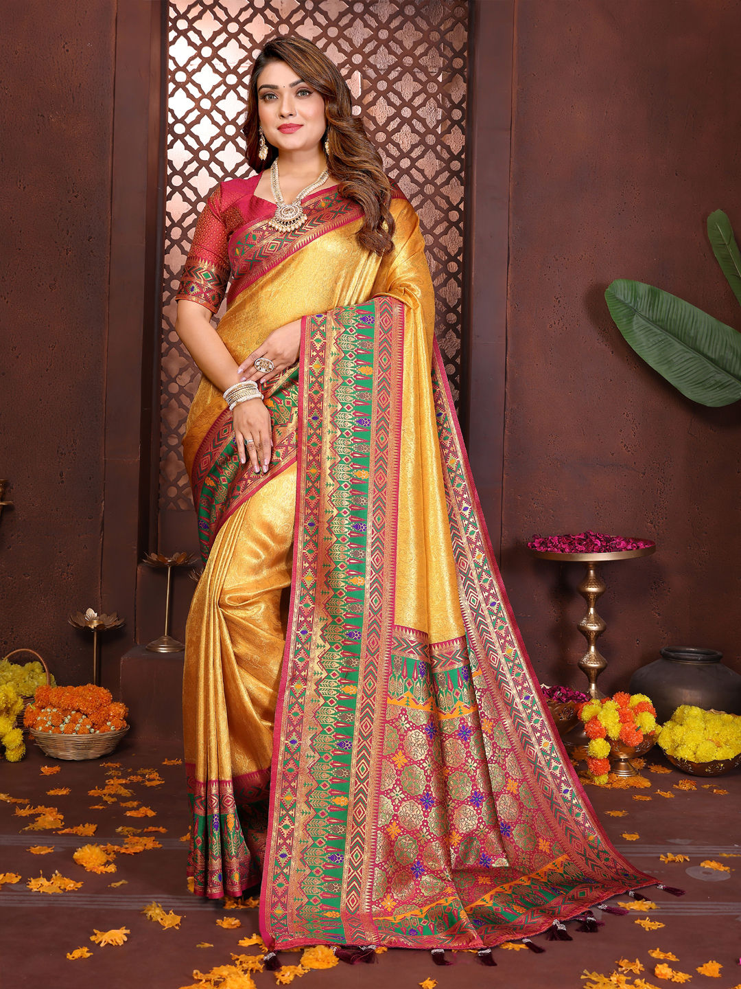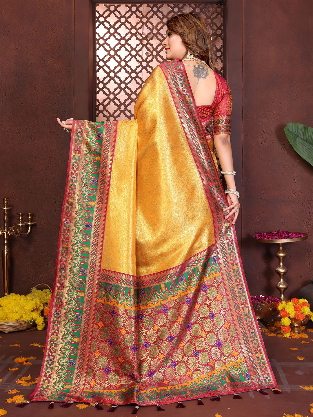 Tissue Wedding Saree in Yellow with Weaving work