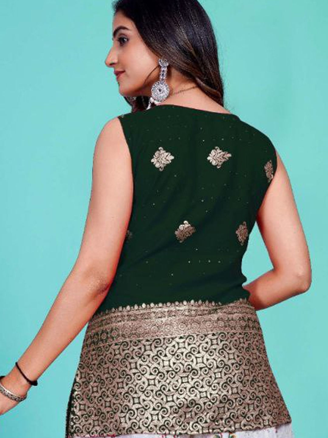 Green color Kurti in Banarasi Silk fabric with Weaving work