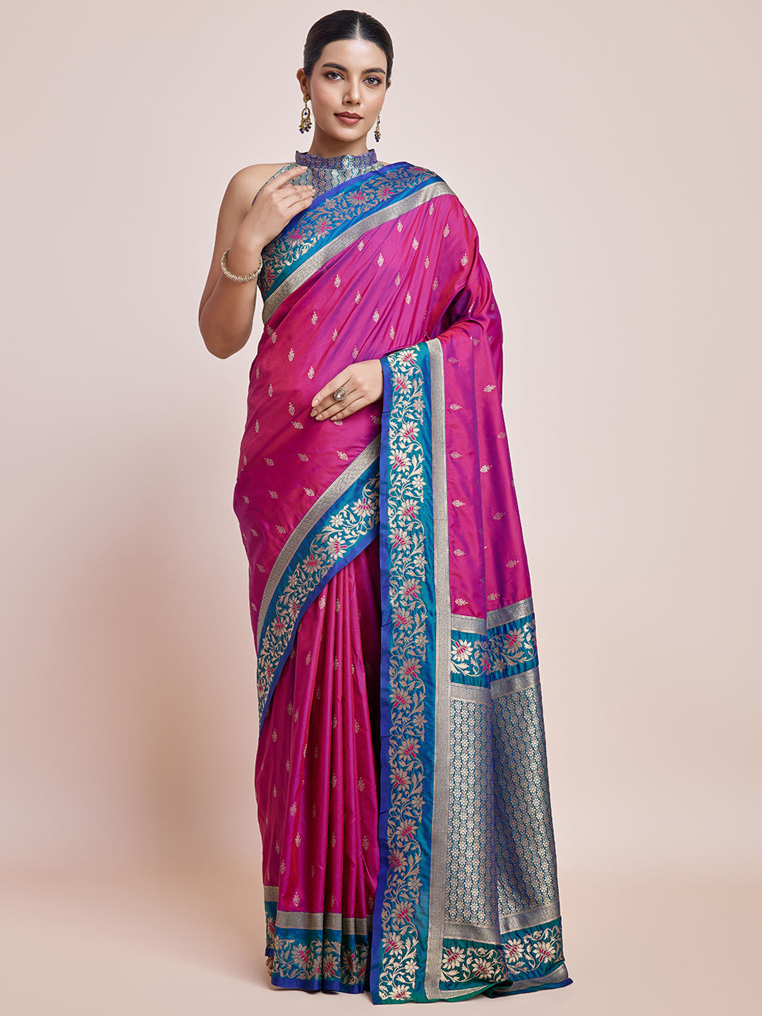 Pink and Majenta color Saree in Banarasi Silk fabric with Weaving, Zari work
