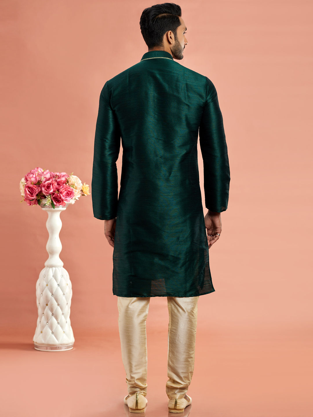 Green color Kurta Pyjamas in Banarasi Silk fabric with Embroidered work