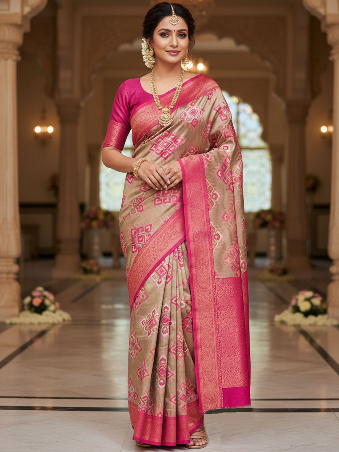 Tissue Festive Saree in Pink and Majenta with Zari work