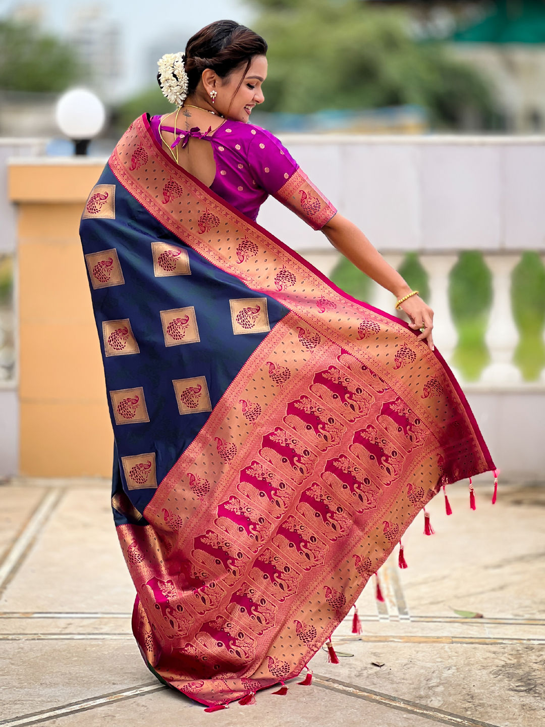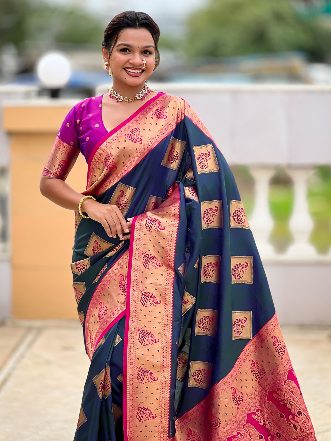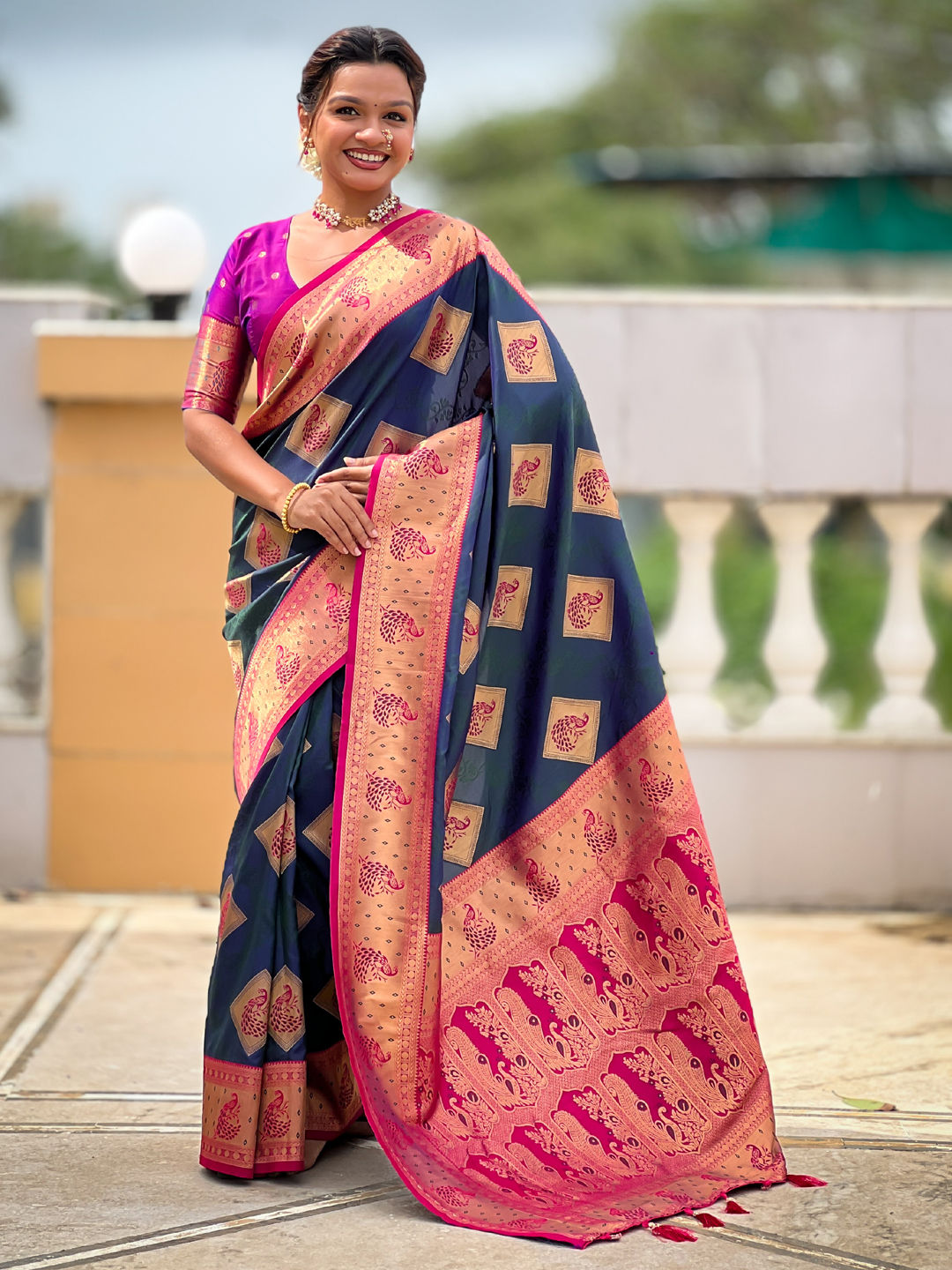 Banarasi Silk Wedding Saree in Blue with Weaving work
